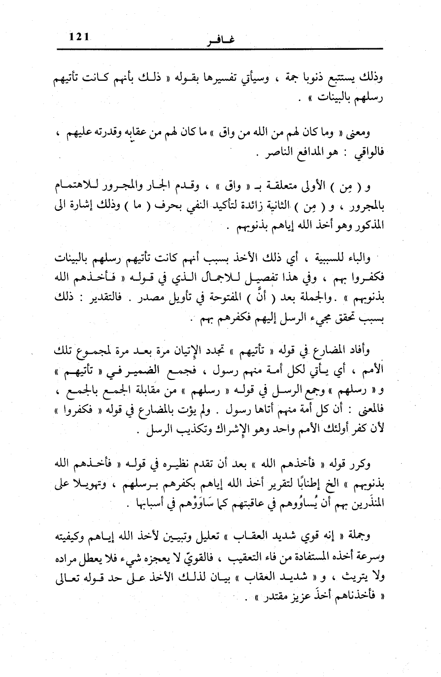 وَكُرِّرَ قَوْلُهُ: فَأَخَذَهُمُ اللَّهُ بَعْدَ أَنْ تَقَدَّمَ نَظِيرُهُ فِي قَوْلِهِ: فَأَخَذَهُمُ اللَّهُ بِذُنُوبِهِمْ إِلَخْ إِطْنَابًا لِتَقْرِيرِ أَخْذِ اللَّهِ إِيَّاهُمْ بِكُفْرِهِمْ بِرُسُلِهِمْ، وَتَهْوِيلًا عَلَى الْمُنْذِرِينَ بِهِمْ أَنْ يُسَاوُوهُمْ فِي عَاقِبَتِهِمْ كَمَا سَاوُوهُمْ فِي أَسْبَابِهَا.