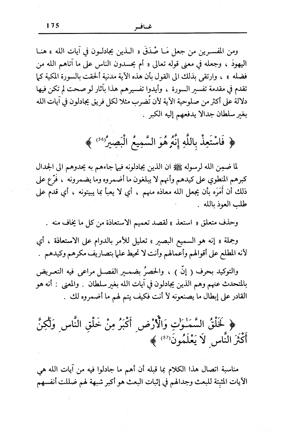 لَخَلْقُ السَّماواتِ وَالْأَرْضِ أَكْبَرُ مِنْ خَلْقِ النَّاسِ وَلكِنَّ أَكْثَرَ النَّاسِ لَا يَعْلَمُونَ (57)
