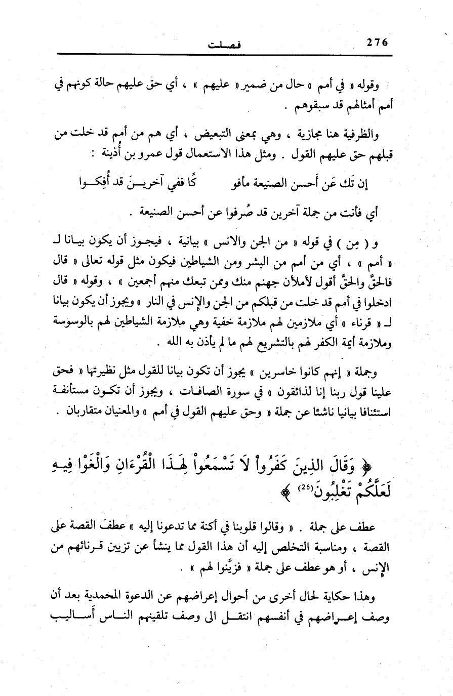 وَقالَ الَّذِينَ كَفَرُوا لَا تَسْمَعُوا لِهذَا الْقُرْآنِ وَالْغَوْا فِيهِ لَعَلَّكُمْ تَغْلِبُونَ (26)