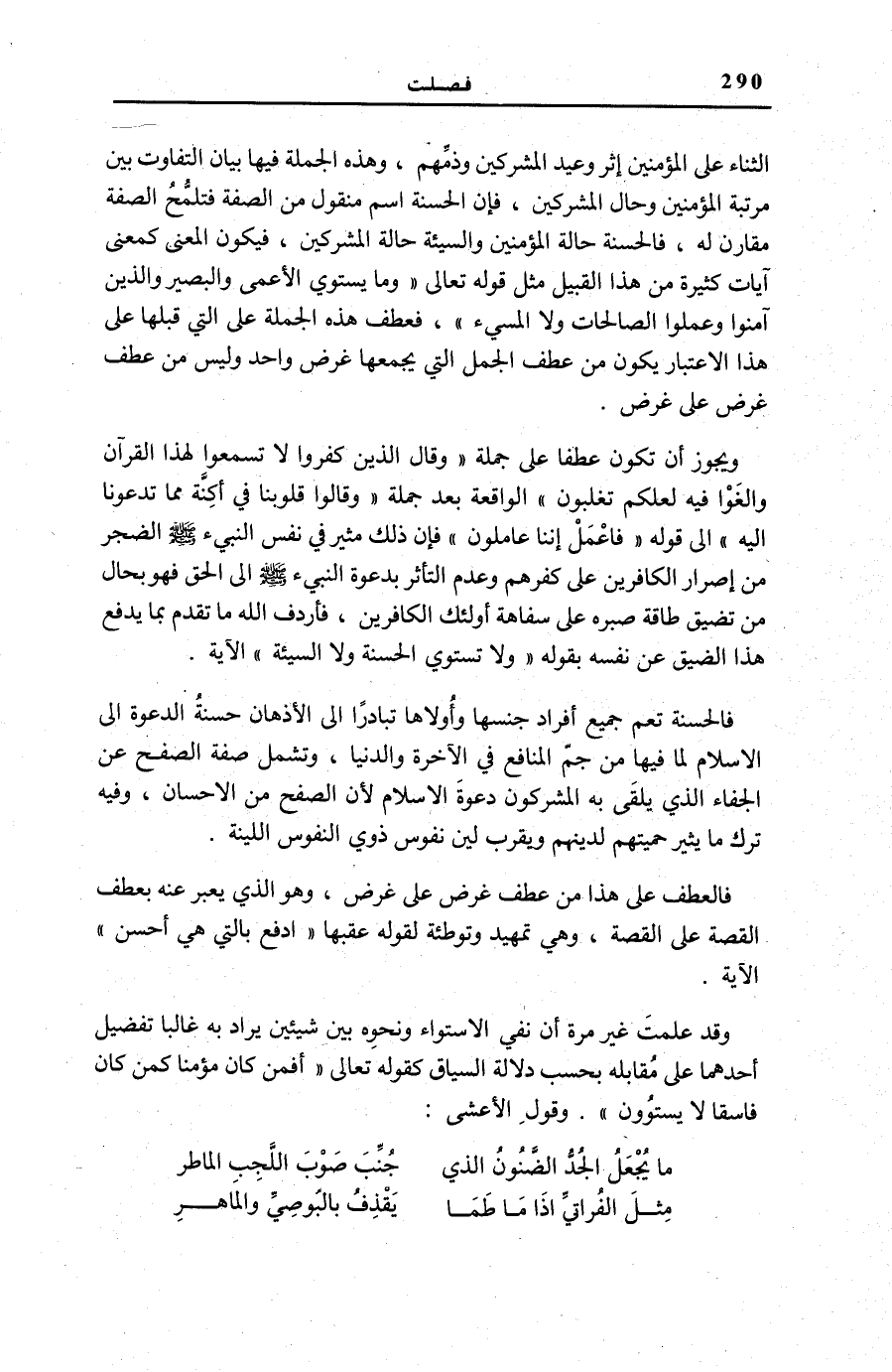 وَقَدْ عَلِمْتَ غَيْرَ مَرَّةٍ أَنَّ نَفْيَ الِاسْتِوَاءِ وَنَحْوَهُ بَيْنَ شَيْئَيْنِ يُرَادُ بِهِ غَالِبًا تَفْضِيلُ أَحَدِهِمَا عَلَى مُقَابِلِهِ بِحَسَبَ دَلَالَةِ السِّيَاقِ كَقَوْلِهِ تَعَالَى: أَفَمَنْ كانَ مُؤْمِناً كَمَنْ كانَ فاسِقاً لَا يَسْتَوُونَ [السَّجْدَة: 18] . وَقَوْلِ الْأَعْشَى: