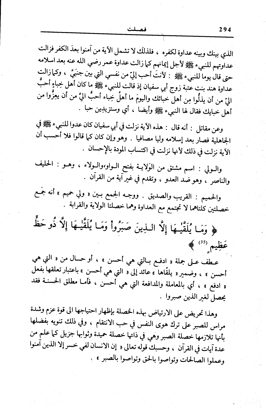 وَما يُلَقَّاها إِلاَّ الَّذِينَ صَبَرُوا وَما يُلَقَّاها إِلاَّ ذُو حَظٍّ عَظِيمٍ (35)
