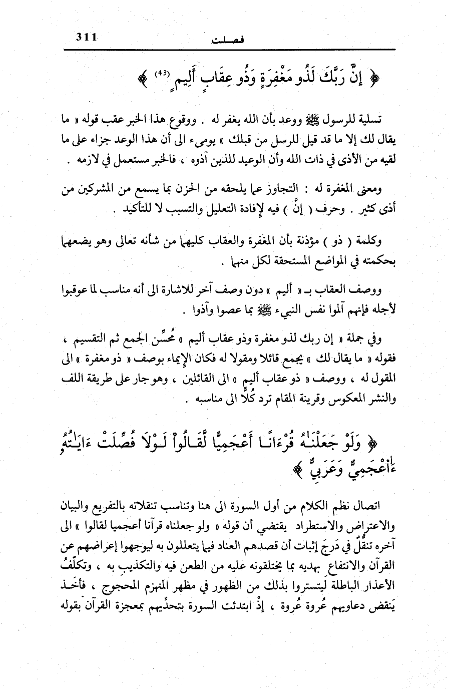 وَلَوْ جَعَلْناهُ قُرْآناً أَعْجَمِيًّا لَقالُوا لَوْلا فُصِّلَتْ آياتُهُءَ أَعْجَمِيٌّ وَعَرَبِيٌّ.