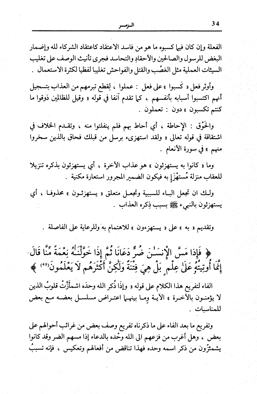 فَإِذا مَسَّ الْإِنْسانَ ضُرٌّ دَعانا ثُمَّ إِذا خَوَّلْناهُ نِعْمَةً مِنَّا قالَ إِنَّما أُوتِيتُهُ عَلى عِلْمٍ بَلْ هِيَ فِتْنَةٌ وَلكِنَّ أَكْثَرَهُمْ لَا يَعْلَمُونَ (49)