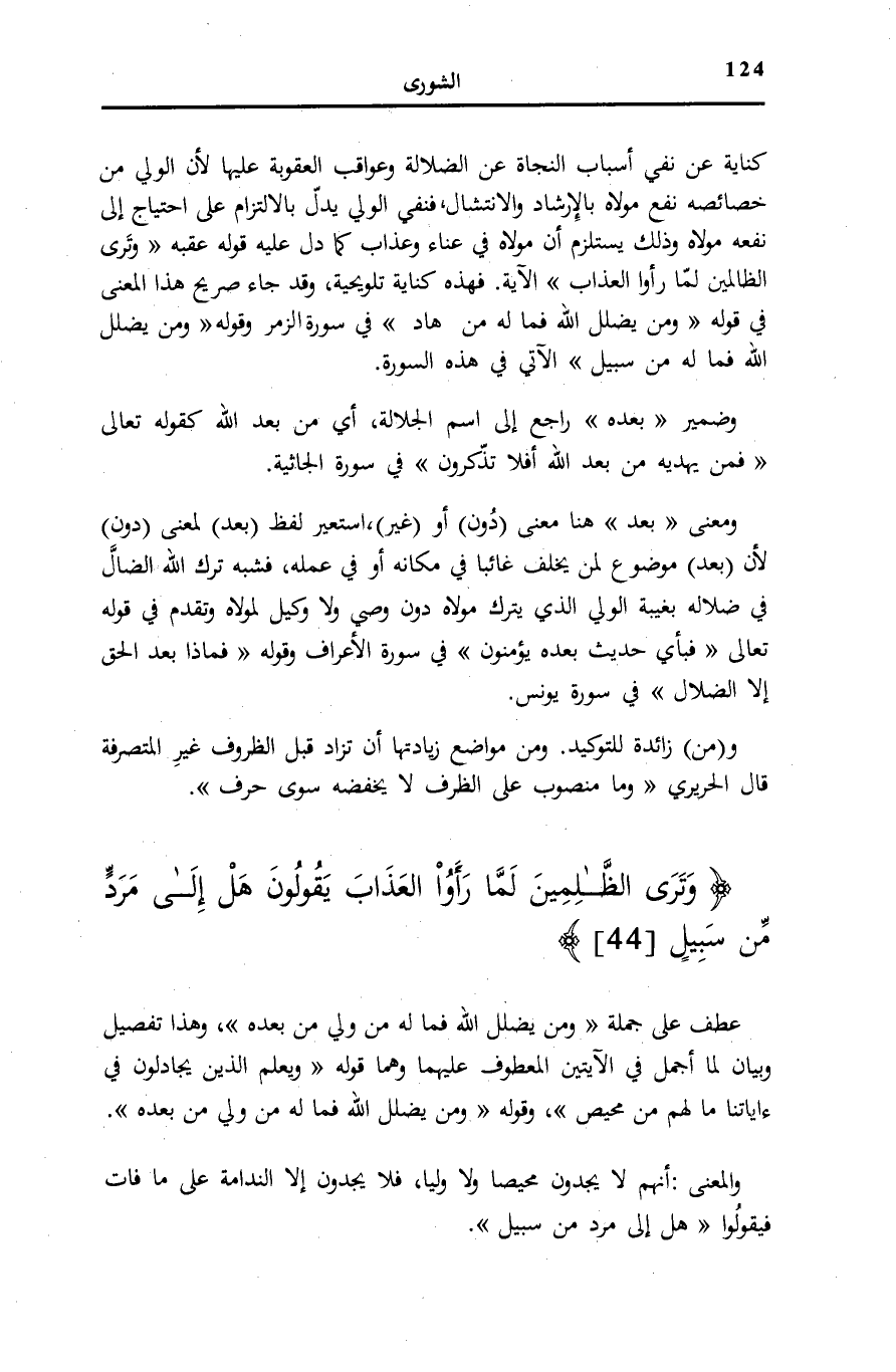 وَتَرَى الظَّالِمِينَ لَمَّا رَأَوُا الْعَذابَ يَقُولُونَ هَلْ إِلى مَرَدٍّ مِنْ سَبِيلٍ (44) .