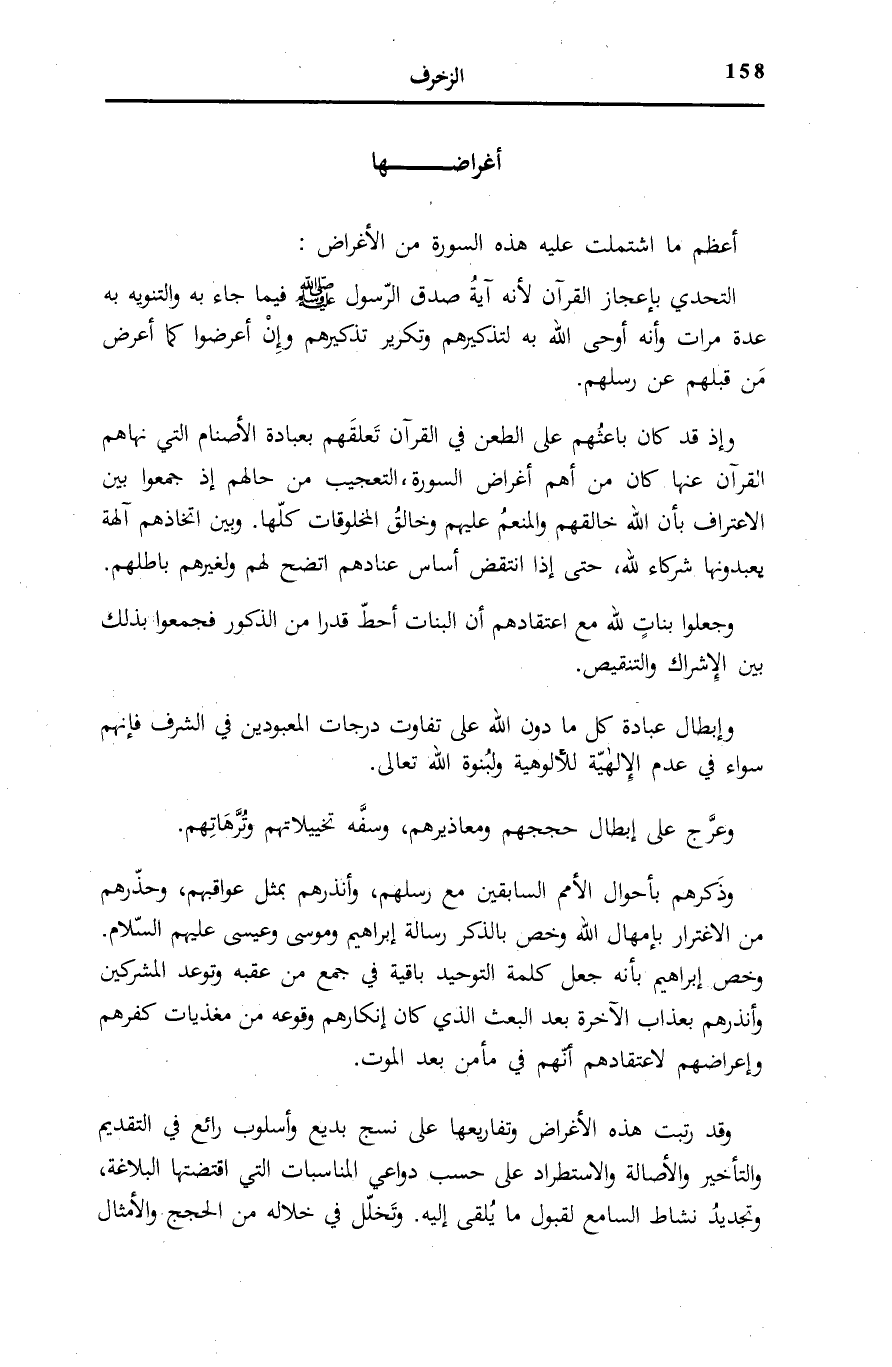 وَإِذْ قَدْ كَانَ بَاعِثُهُمْ عَلَى الطَّعْنِ فِي الْقُرْآنِ تَعَلُّقَهُمْ بِعِبَادَةِ الْأَصْنَامِ الَّتِي نَهَاهُمُ الْقُرْآنُ عَنْهَا كَانَ مِنْ أَهَمِّ أَغْرَاضِ السُّورَةِ، التَّعْجِيبُ مِنْ حَالِهِمْ إِذْ جَمَعُوا بَيْنَ الِاعْتِرَافِ بِأَنَّ اللَّهَ خَالِقُهُمْ وَالْمُنْعِمُ عَلَيْهِمْ وَخَالِقُ الْمَخْلُوقَاتِ كُلِّهَا وَبَيْنَ اتِّخَاذِهِمْ آلِهَةً يَعْبُدُونَهَا شُرَكَاءَ لِلَّهِ، حَتَّى إِذَا انْتَقَضَ أَسَاسُ عِنَادِهِمُ اتَّضَحَ لَهُمْ وَلِغَيْرِهِمْ بَاطِلُهُمْ. وَجَعَلُوا بَنَاتٍ لِلَّهِ مَعَ اعْتِقَادِهِمْ أَنَّ الْبَنَاتِ أَحَطُّ قَدْرًا مِنَ الذُّكُورِ فَجَمَعُوا بِذَلِكَ بَيْنَ الْإِشْرَاكِ وَالتَّنْقِيصِ. وَإِبْطَالُ عِبَادَةِ كُلِّ مَا دُونَ اللَّهِ عَلَى تَفَاوُتِ دَرَجَاتِ الْمَعْبُودِينَ فِي الشَّرَفِ فَإِنَّهُمْ سَوَاءٌ فِي عَدَمِ الْإِلَهِيَّةِ لِلْأُلُوهِيَّةِ وَلِبُنُوَّةِ اللَّهِ تَعَالَى. وَعَرَّجَ عَلَى إِبْطَالِ حُجَجِهِمْ وَمَعَاذِيرِهِمْ، وَسَفَّهَ تَخْيِيلَاتِهِمْ وَتُرَّهَاتِهِمْ.