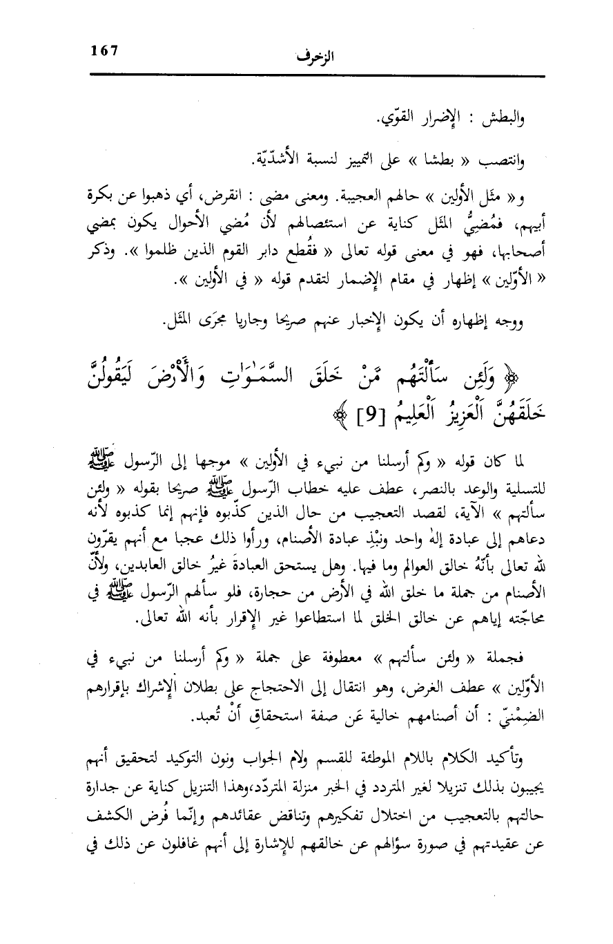 وَلَئِنْ سَأَلْتَهُمْ مَنْ خَلَقَ السَّماواتِ وَالْأَرْضَ لَيَقُولُنَّ خَلَقَهُنَّ الْعَزِيزُ الْعَلِيمُ (9)
