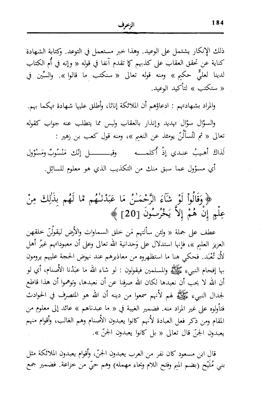 وَقالُوا لَوْ شاءَ الرَّحْمنُ مَا عَبَدْناهُمْ مَا لَهُمْ بِذلِكَ مِنْ عِلْمٍ إِنْ هُمْ إِلاَّ يَخْرُصُونَ (20)
