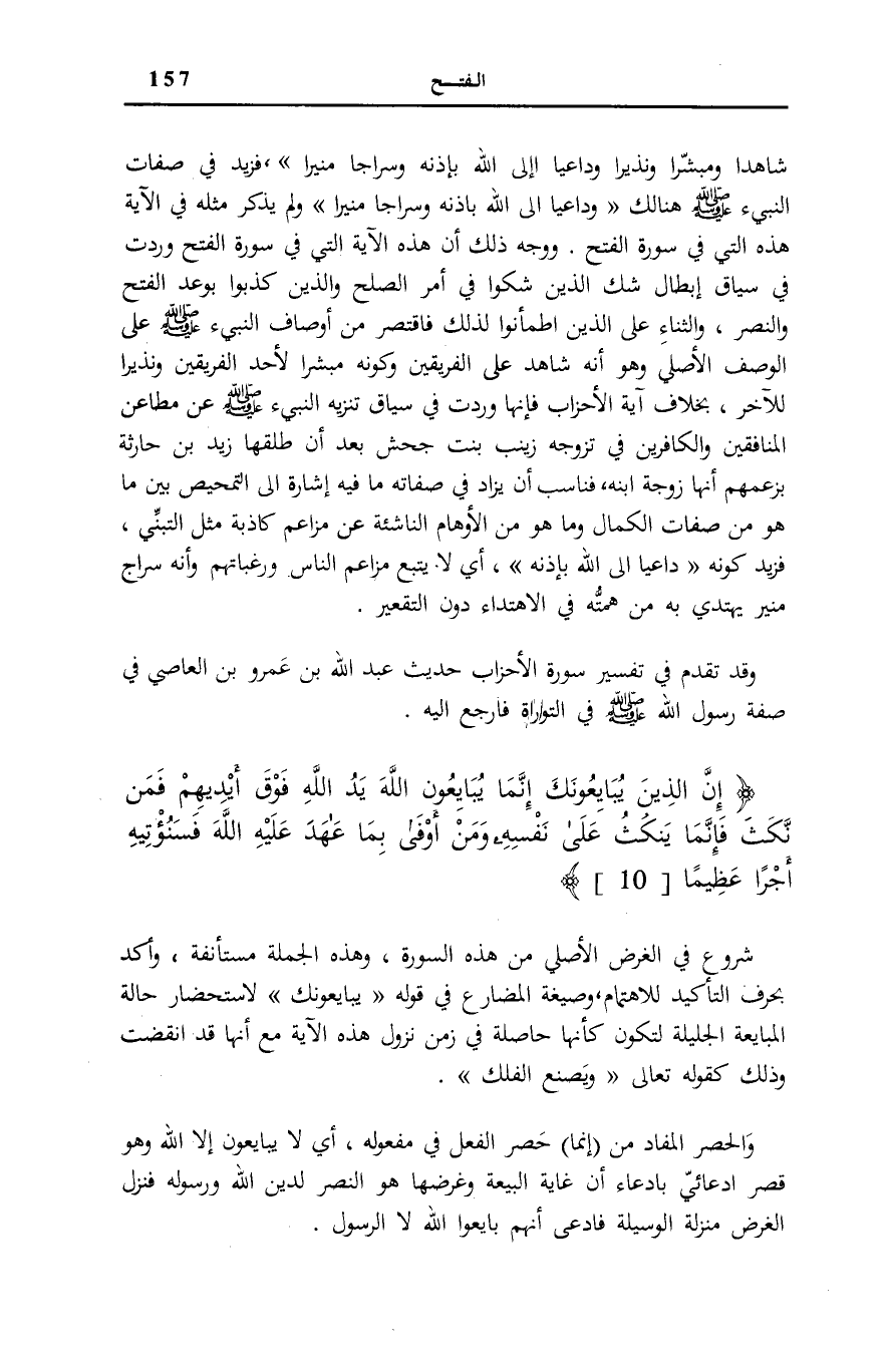 وَقَدْ تَقَدَّمَ فِي تَفْسِيرِ سُورَةِ الْأَحْزَابِ حَدِيثُ عَبْدِ اللَّهِ بْنِ عَمْرو بن العَاصِي فِي صِفَةِ رَسُول الله صَلَّى اللهُ عَلَيْهِ وَسَلَّمَ فِي «التَّوْرَاةِ» فَارْجِع إِلَيْهِ.