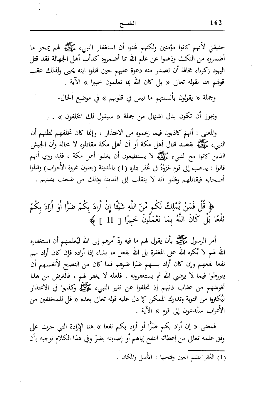 قُلْ فَمَنْ يَمْلِكُ لَكُمْ مِنَ اللَّهِ شَيْئاً إِنْ أَرادَ بِكُمْ ضَرًّا أَوْ أَرادَ بِكُمْ نَفْعاً بَلْ كانَ اللَّهُ بِما تَعْمَلُونَ خَبِيراً.