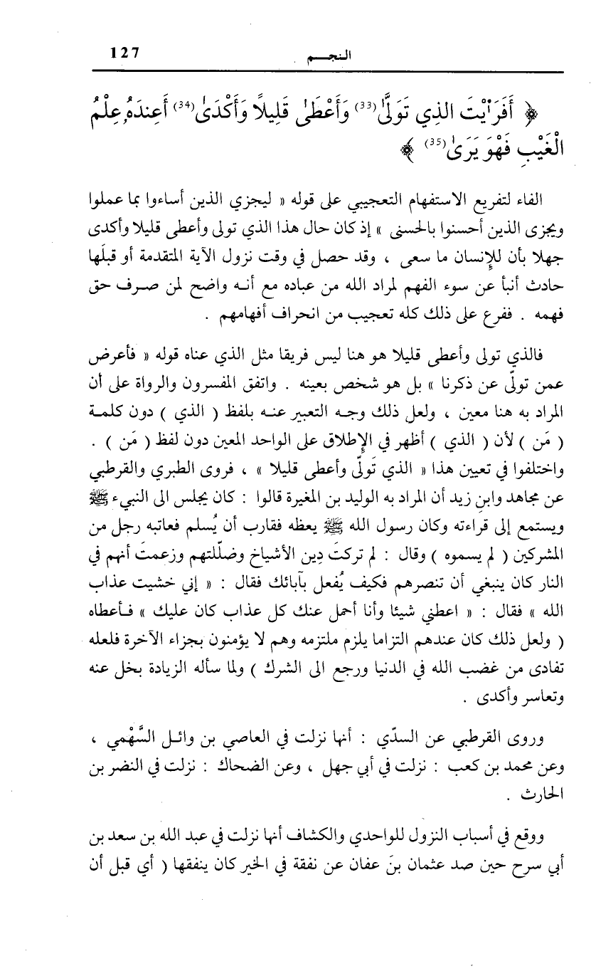 [سُورَة النَّجْم (53) : الْآيَات 33 إِلَى 35]