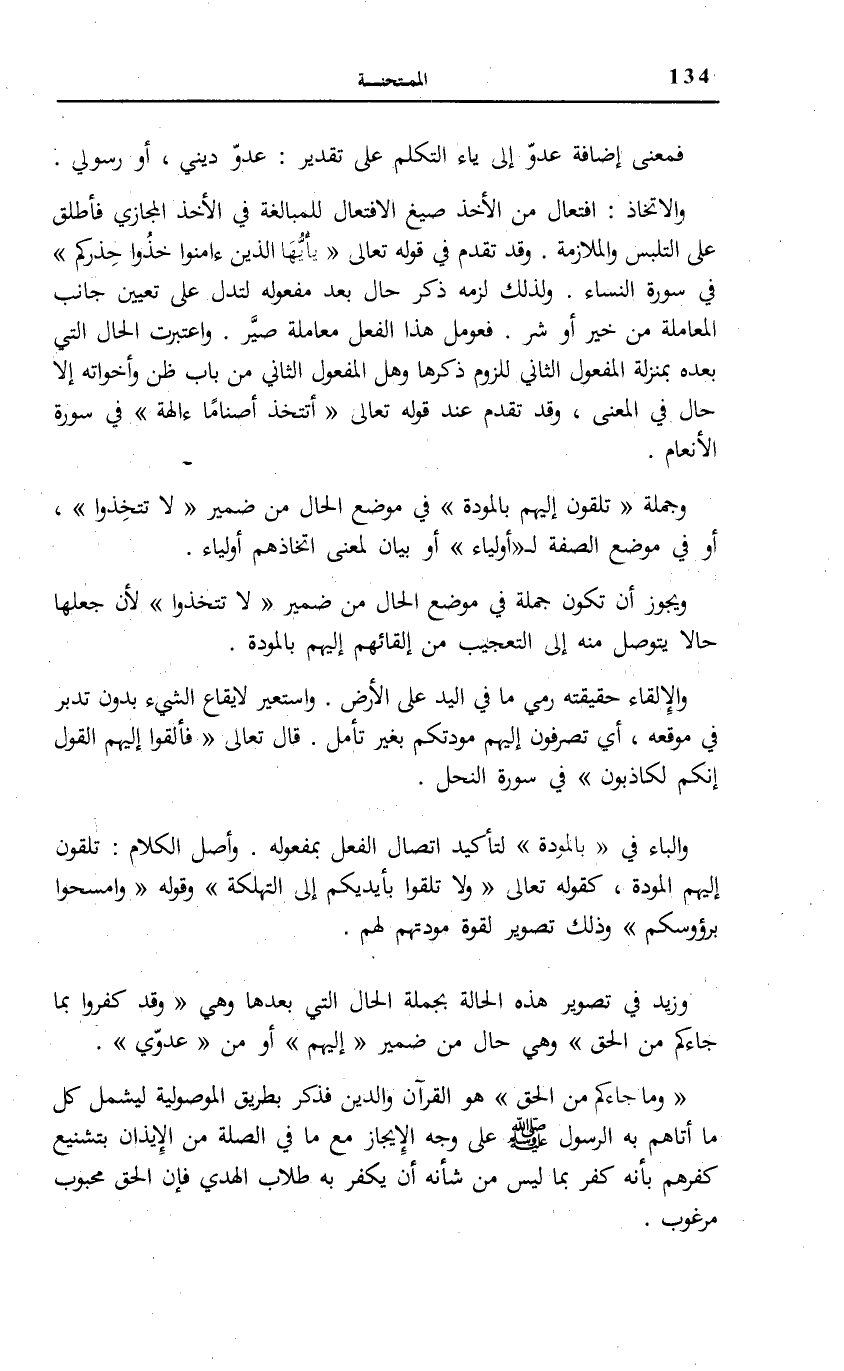 وَجُمْلَةُ تُلْقُونَ إِلَيْهِمْ بِالْمَوَدَّةِ فِي مَوْضِعِ الْحَالِ مِنْ ضَمِيرِ لَا تَتَّخِذُوا، أَوْ فِي مَوْضِعِ الصِّفَةِ لِ أَوْلِياءَ أَوْ بَيَانٍ لِمَعْنَى اتِّخَاذِهِمْ أَوْلِيَاءَ.