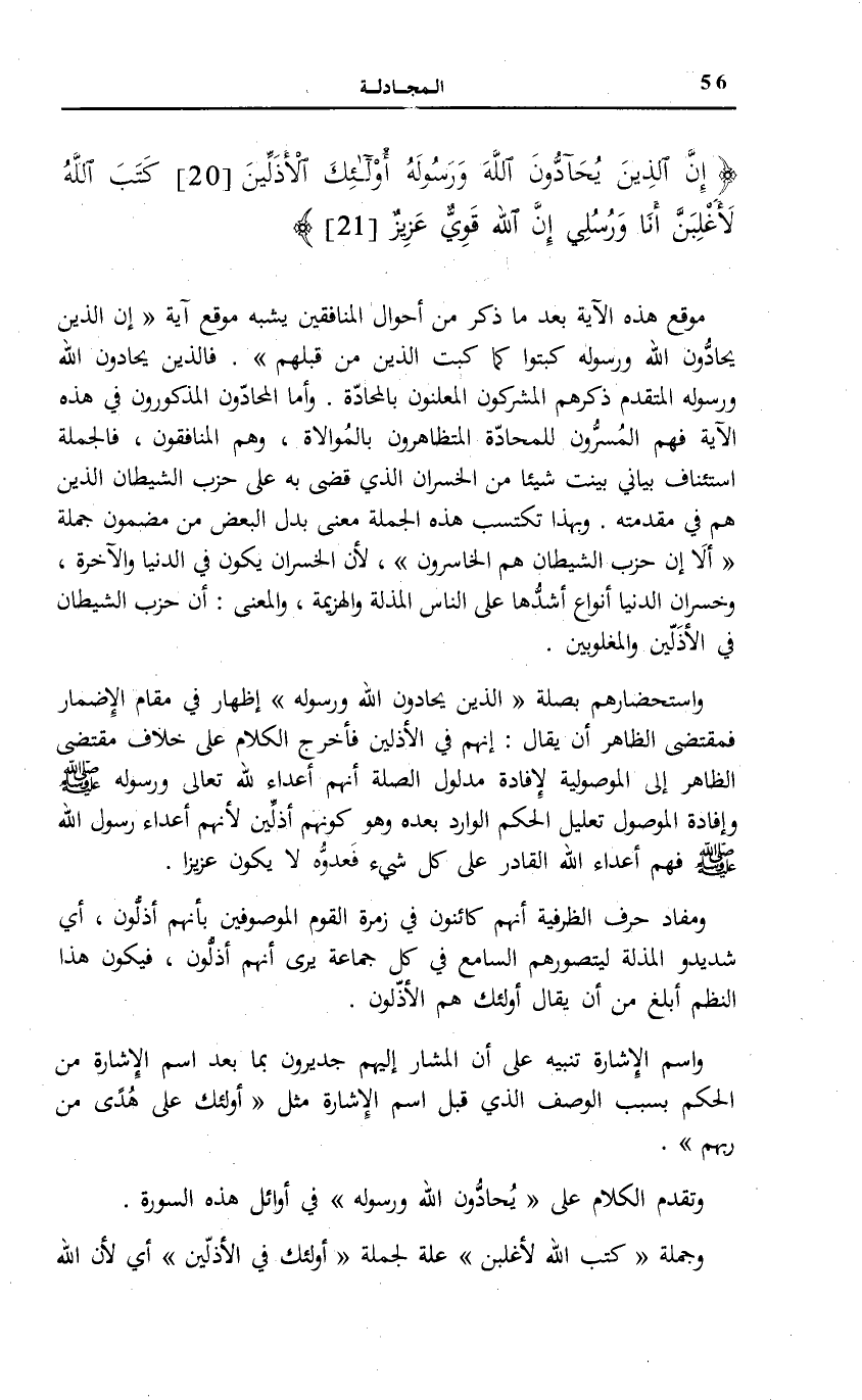 [سُورَة المجادلة (58) : الْآيَات 20 إِلَى 21]
