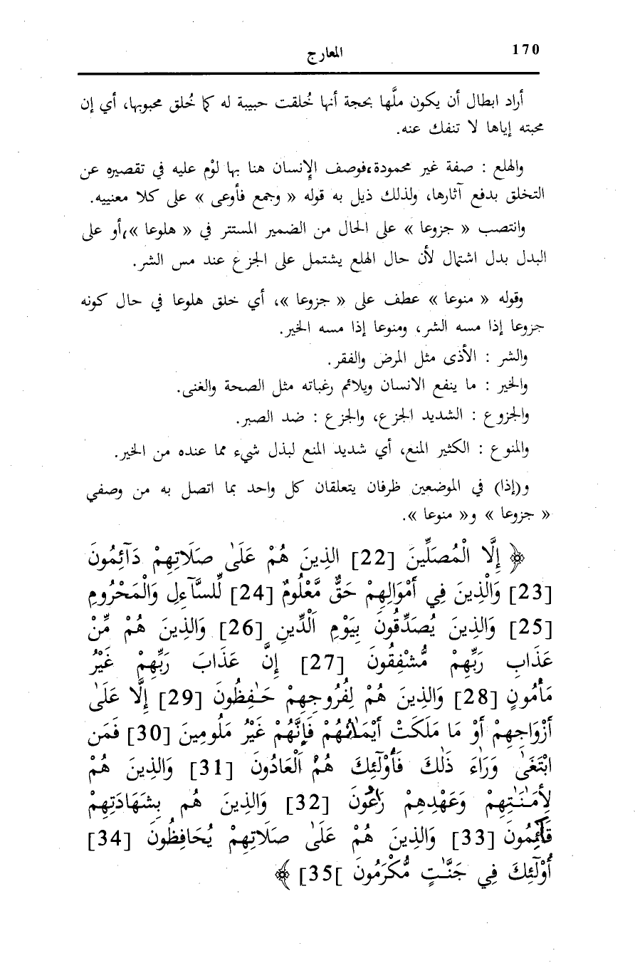 وَقَوْلُهُ: مَنُوعاً عَطْفٌ عَلَى جَزُوعاً، أَيْ خُلِقَ هَلُوعًا فِي حَالِ كَوْنِهِ جَزُوعًا إِذَا مَسَّهُ الشَّرُّ، وَمَنُوعًا إِذَا مَسَّهُ الْخَيْرُ.