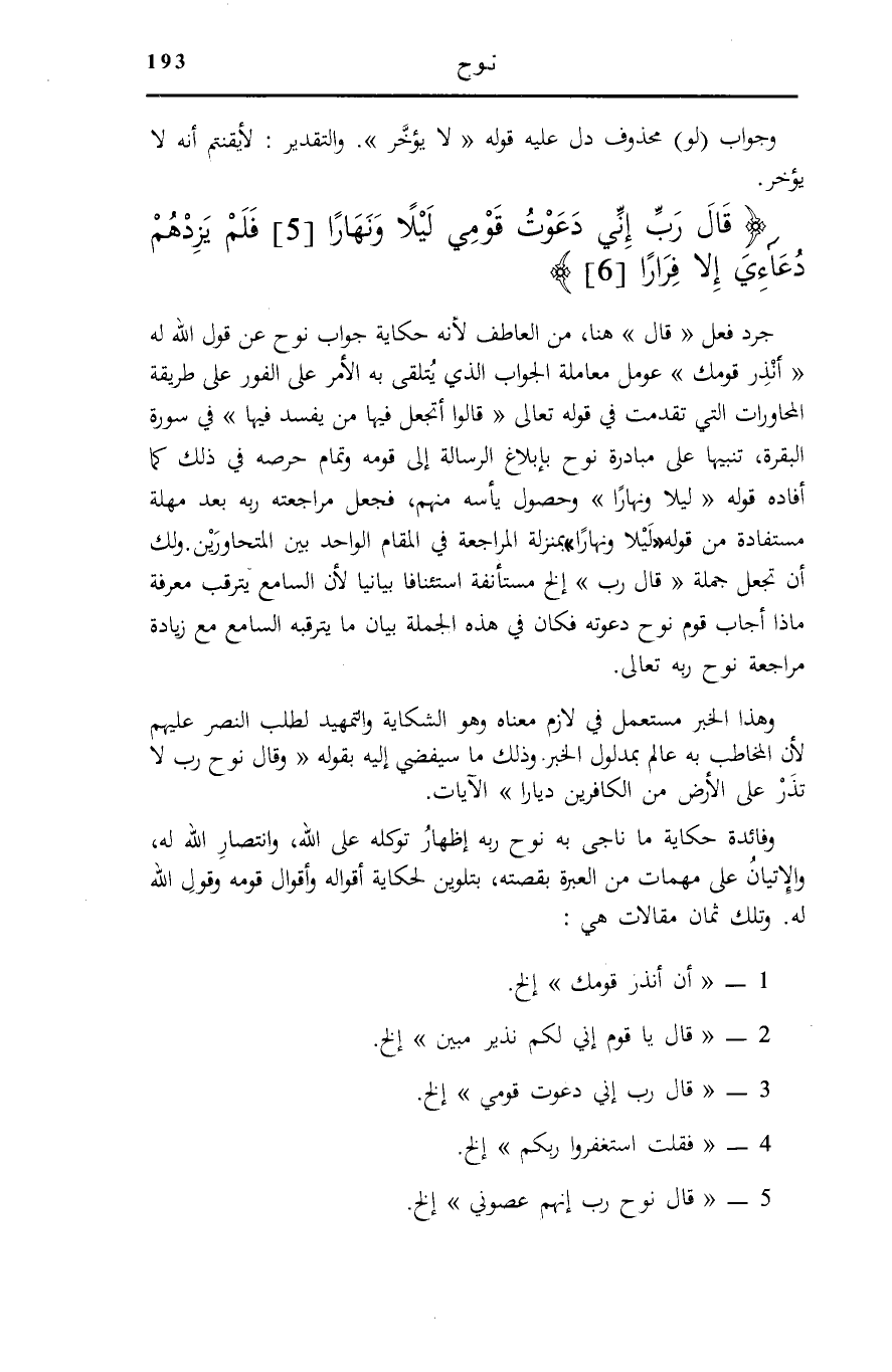3- قالَ رَبِّ إِنِّي دَعَوْتُ قَوْمِي إِلَخ [نوح: 5] .