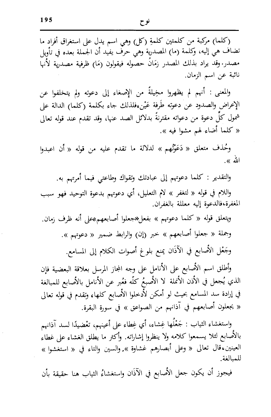 وَيَتَعَلَّقُ قَوْلُهُ: كُلَّما دَعَوْتُهُمْ بِفِعْلِ جَعَلُوا أَصابِعَهُمْ عَلَى أَنَّهُ ظَرْفُ زَمَانٍ.