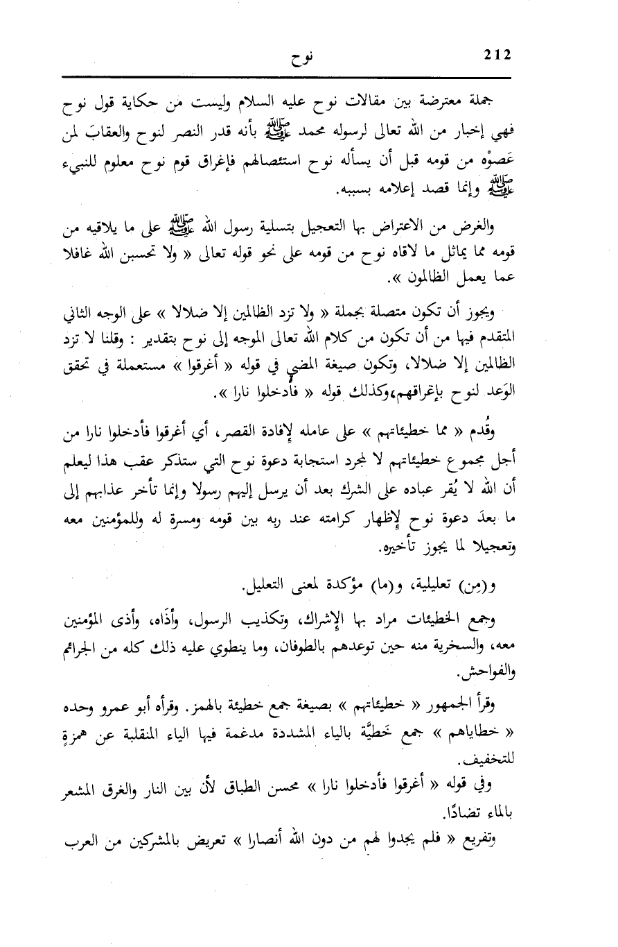 جُمْلَةٌ مُعْتَرِضَةٌ بَيْنَ مَقَالَاتِ نُوحٍ عَلَيْهِ السَّلَامُ وَلَيْسَتْ مِنْ حِكَايَةِ قَوْلِ نُوحٍ فَهِيَ إِخْبَارٌ مِنَ اللَّهِ تَعَالَى لِرَسُولِهِ مُحَمَّدٍ صَلَّى اللهُ عَلَيْهِ وَسَلَّمَ بِأَنَّهُ قَدَّرَ النَّصْرَ لِنُوحٍ وَالْعِقَابَ لِمَنْ عَصَوْهُ مِنْ قَوْمِهِ قَبْلَ أَنْ يَسْأَلَهُ نُوحٌ اسْتِئْصَالَهُمْ فَإِغْرَاقُ قَوْمِ نُوحٍ مَعْلُومٌ لِلنَّبِيءِ صَلَّى اللهُ عَلَيْهِ وَسَلَّمَ وَإِنَّمَا قُصِدَ إِعْلَامُهُ بِسَبَبِهِ.
