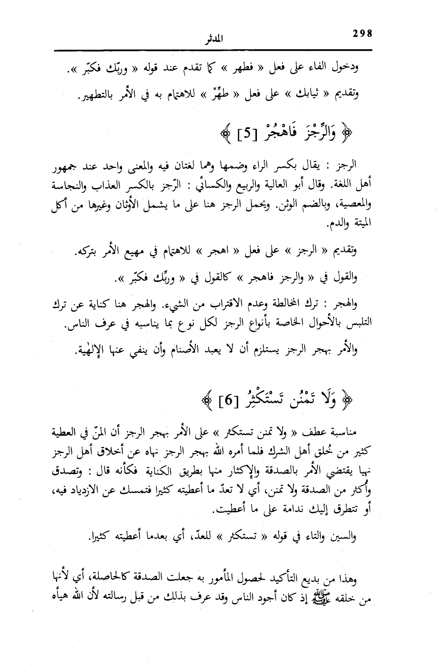 وَالْقَوْلُ فِي وَالرُّجْزَ فَاهْجُرْ كَالْقَوْلِ فِي وَرَبَّكَ فَكَبِّرْ.
