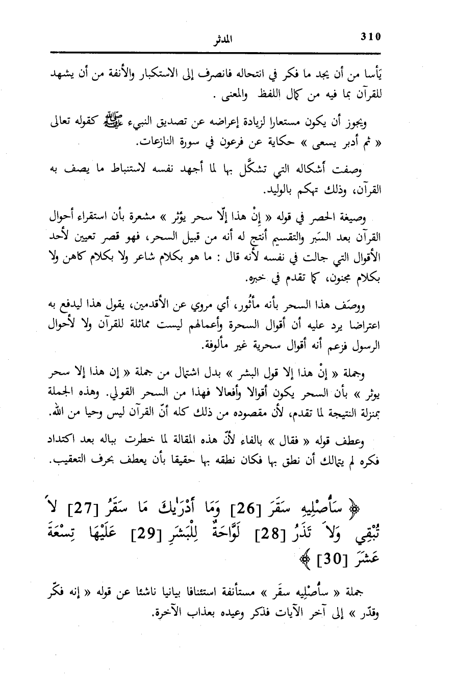 [سُورَة المدثر (74) : الْآيَات 26 إِلَى 30]