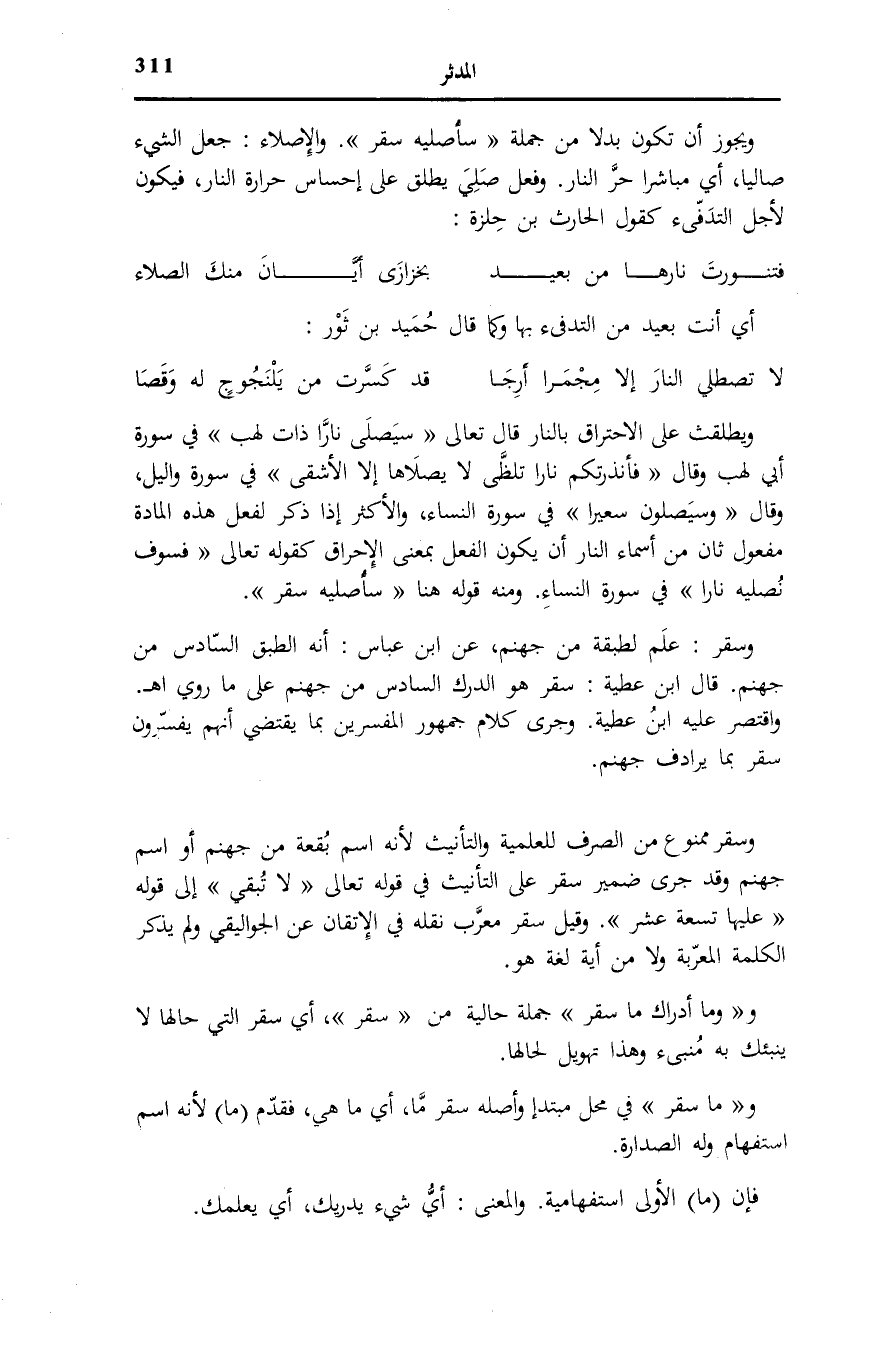 (¬1) فِي المطبوعة: سَأُصْلِيهِ سَقَرَ والمثبت من «الْكَشَّاف» (4/ 183) ط. دَار الْفِكر.