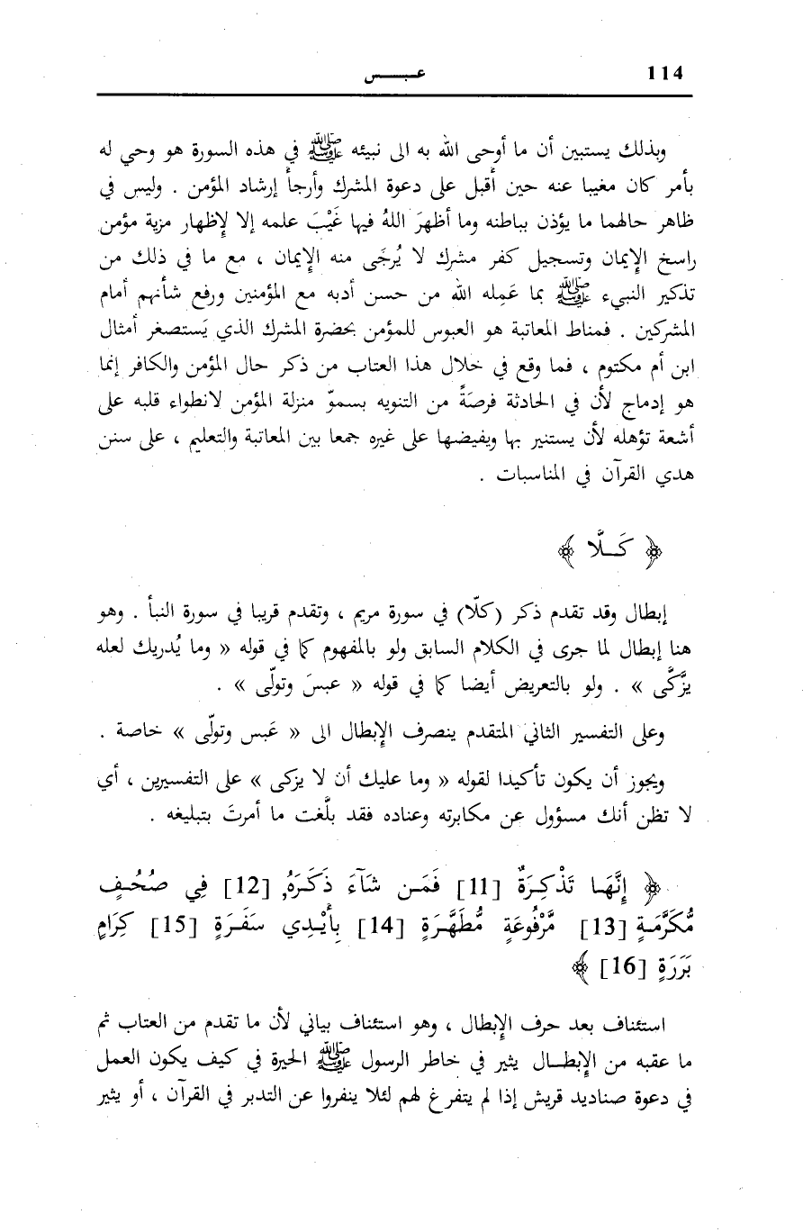 كَلاَّ إِنَّها تَذْكِرَةٌ (11) فَمَنْ شاءَ ذَكَرَهُ (12) فِي صُحُفٍ مُكَرَّمَةٍ (13) مَرْفُوعَةٍ مُطَهَّرَةٍ (14) بِأَيْدِي سَفَرَةٍ (15)