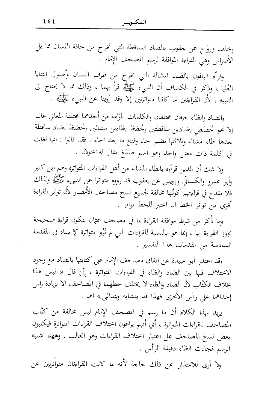 وَمَا ذُكِرَ مِنْ شَرْطِ مُوَافَقَةِ الْقِرَاءَةِ لِمَا فِي مُصْحَفِ عُثْمَانَ لِتَكُونَ قِرَاءَةً صَحِيحَةً تَجُوزُ الْقِرَاءَةُ بِهَا، إِنَّمَا هُوَ بِالنِّسْبَةِ لِلْقِرَاءَاتِ الَّتِي لَمْ تُرْوَ متواترة كَمَا بَيناهُ فِي الْمُقَدِّمَةِ السَّادِسَةِ مِنْ مُقَدِّمَاتِ هَذَا التَّفْسِيرِ.