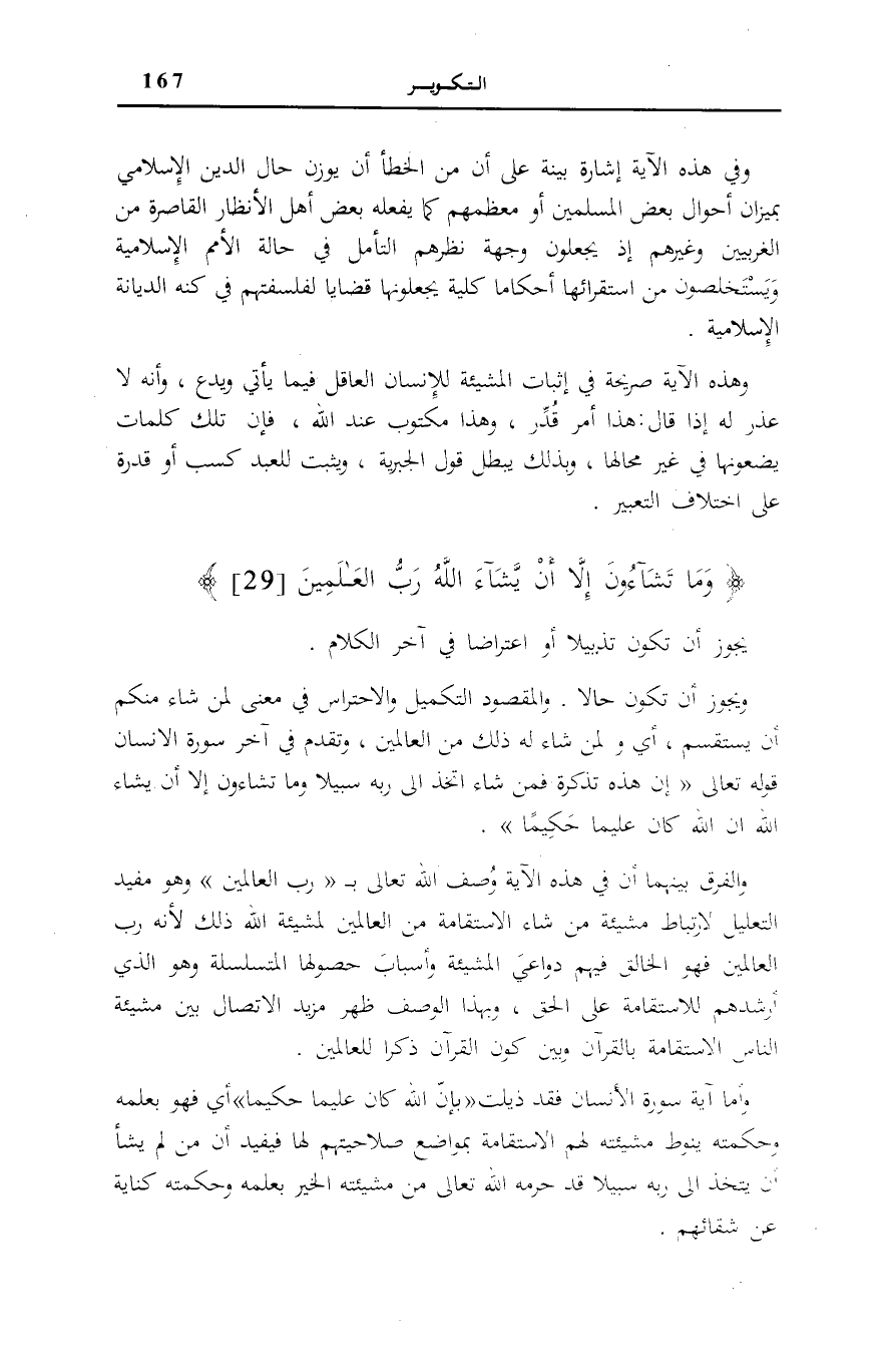 وَما تَشاؤُنَ إِلاَّ أَنْ يَشاءَ اللَّهُ رَبُّ الْعالَمِينَ (29)