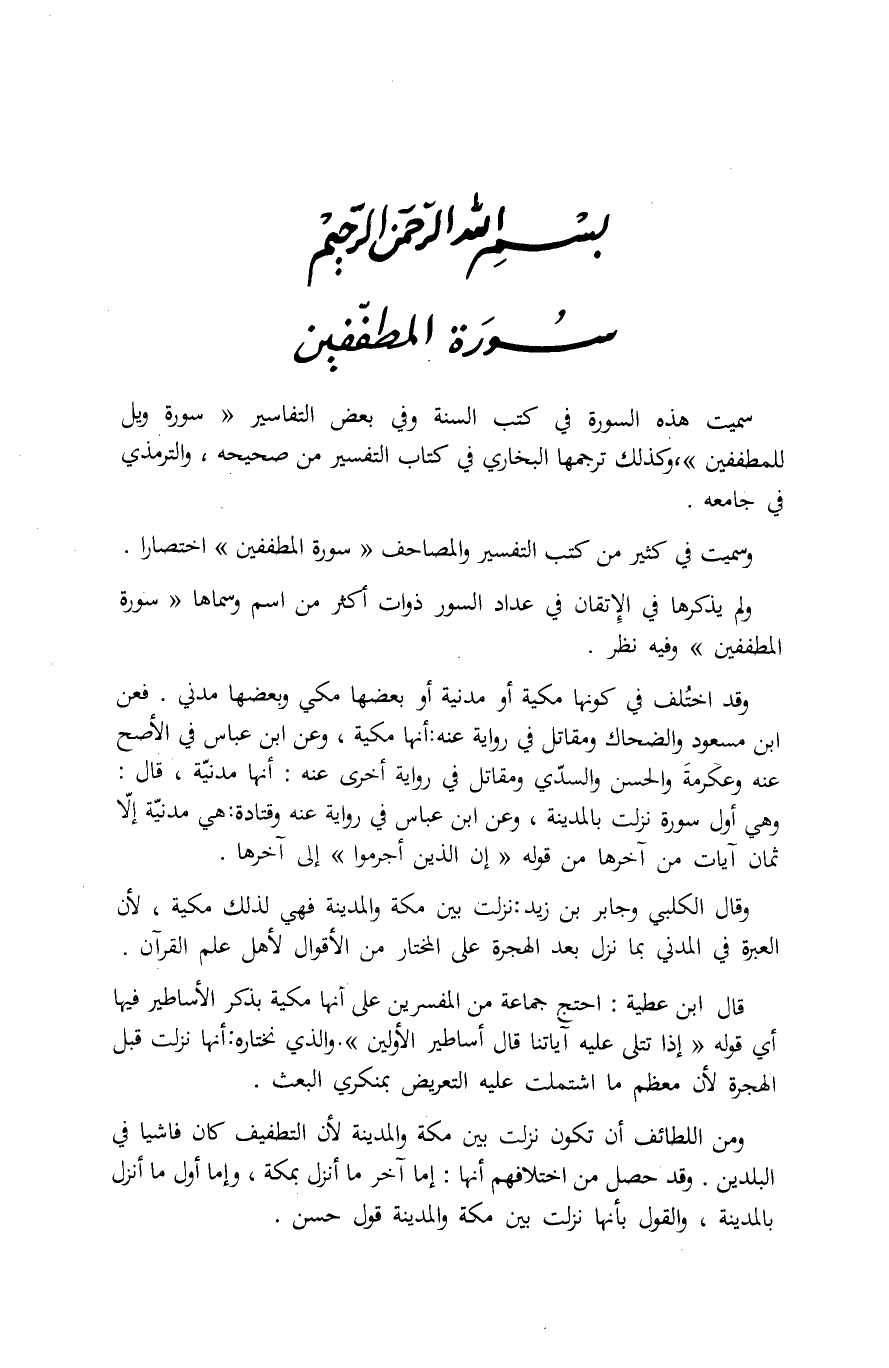 وَسُمِّيَتْ فِي كَثِيرٍ مِنْ كُتُبِ التَّفْسِيرِ وَالْمَصَاحِفِ «سُورَةَ الْمُطَفِّفِينَ» اخْتِصَارًا.