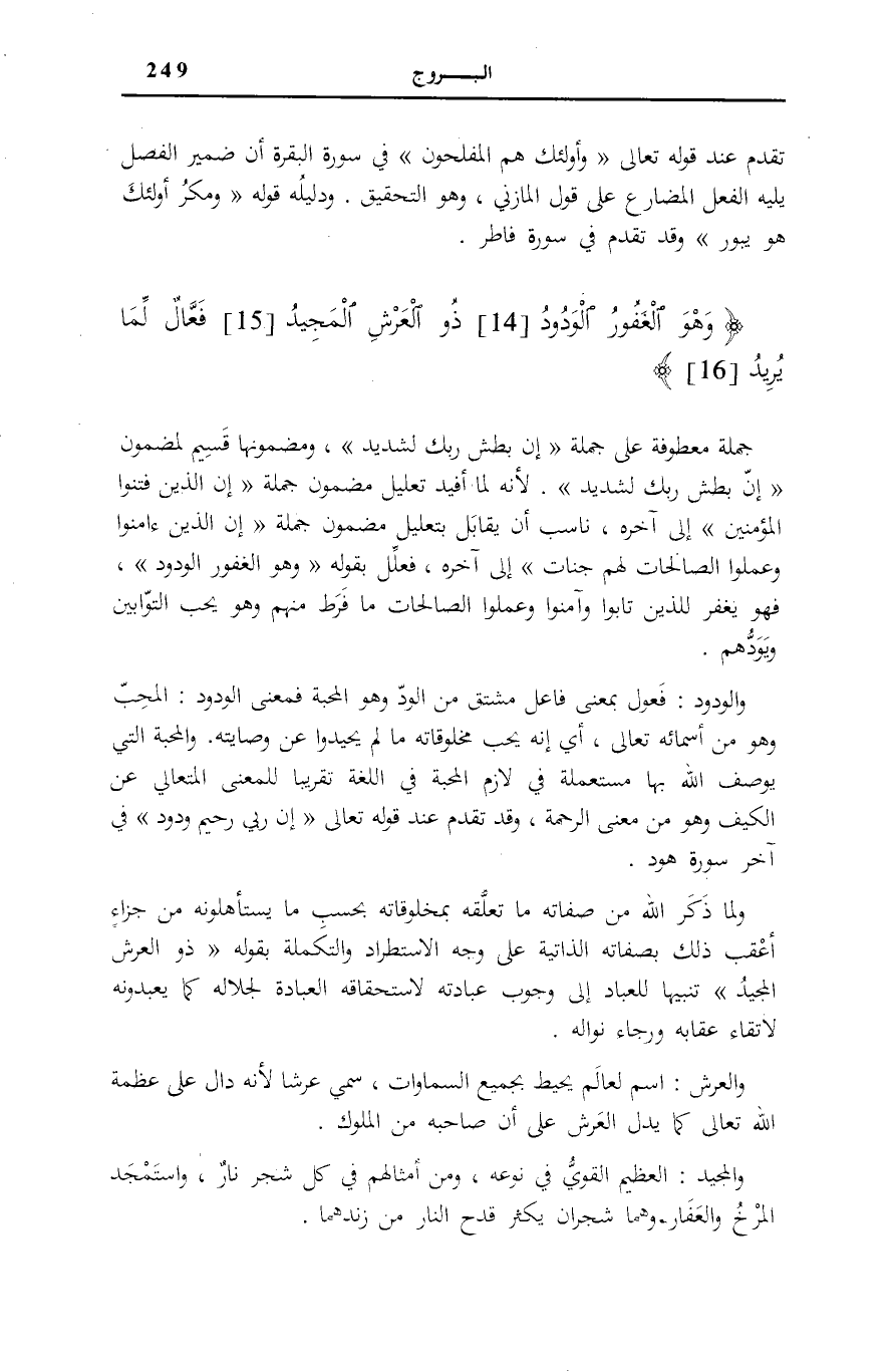 وَهُوَ الْغَفُورُ الْوَدُودُ (14) ذُو الْعَرْشِ الْمَجِيدُ (15) فَعَّالٌ لِما يُرِيدُ (16)