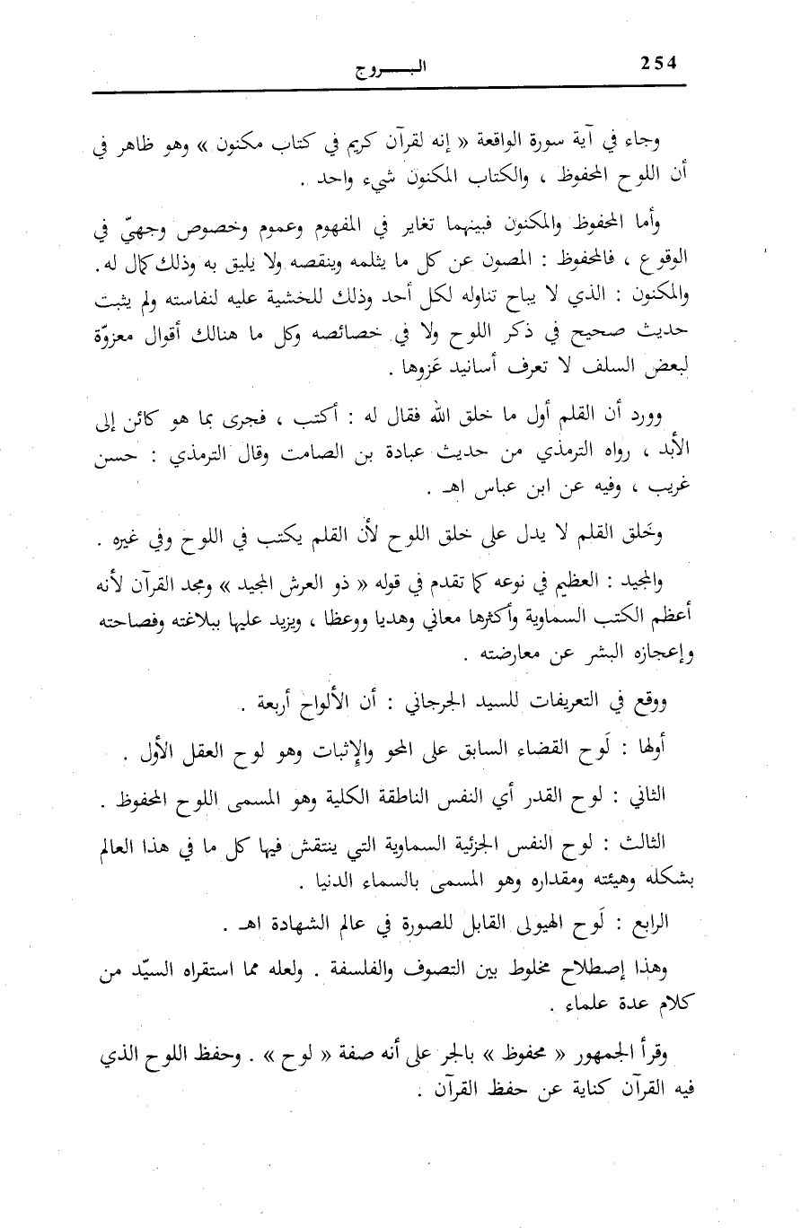 وَوَقَعَ فِي «التَّعْرِيفَاتِ» لِلسَّيِّدِ الْجُرْجَانِيِّ: أَنَّ الْأَلْوَاحَ أَرْبَعَةٌ: