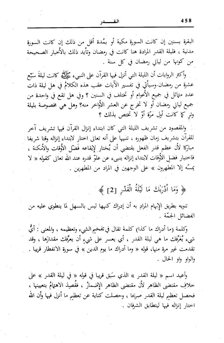 الْبَقَرَةِ بِسِنِينَ إِنْ كَانَتِ السُّورَةُ مَكِّيَّةً أَوْ بِمُدَّةٍ أَقَلَّ مِنْ ذَلِكَ إِنْ كَانَتِ السُّورَةُ مَدَنِيَّةً، فَلَيْلَةُ الْقَدْرِ الْمُرَادَةُ هَنَا كَانَتْ فِي رَمَضَانَ وَتَأَيَّدَ ذَلِكَ بِالْأَخْبَارِ الصَّحِيحَةِ مِنْ كَوْنِهَا مِنْ لَيَالِي رَمَضَانَ فِي كُلِّ سَنَةٍ.