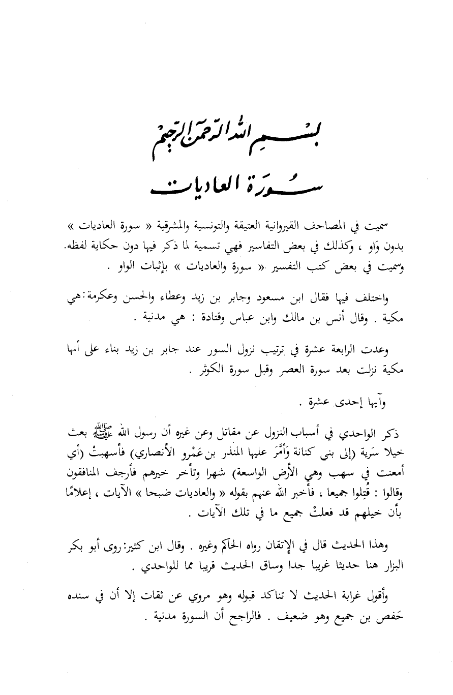 وَأَقُولُ غَرَابَةُ الْحَدِيثِ لَا تُنَاكِدُ قَبُولَهُ وَهُوَ مَرْوِيٌّ عَنْ ثِقَاتٍ إِلَّا أَنَّ فِي سَنَدِهِ حَفْصَ بْنَ جُمَيْعٍ وَهُوَ ضَعِيفٌ. فَالرَّاجِحُ أَنَّ السُّورَةَ مَدَنِيَّةٌ.