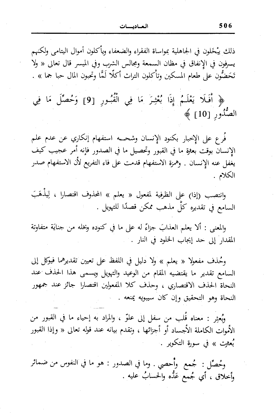 أَفَلا يَعْلَمُ إِذا بُعْثِرَ مَا فِي الْقُبُورِ (9) وَحُصِّلَ مَا فِي الصُّدُورِ (10)