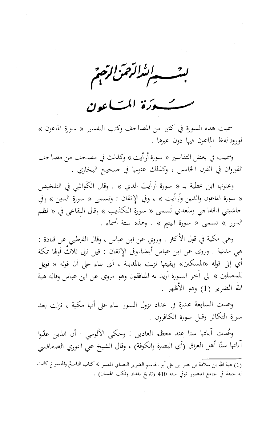 (¬1) هبة الله بن سَلامَة بن نصر بن عَليّ أَبُو الْقَاسِم الضَّرِير الْبَغْدَادِيّ الْمُفَسّر لَهُ كتاب «النَّاسِخ والمنسوخ» كَانَت لَهُ حَلقَة فِي جَامع الْمَنْصُور توفّي سنة 410 «تَارِيخ بَغْدَاد» ونكت الْهِمْيَان» .