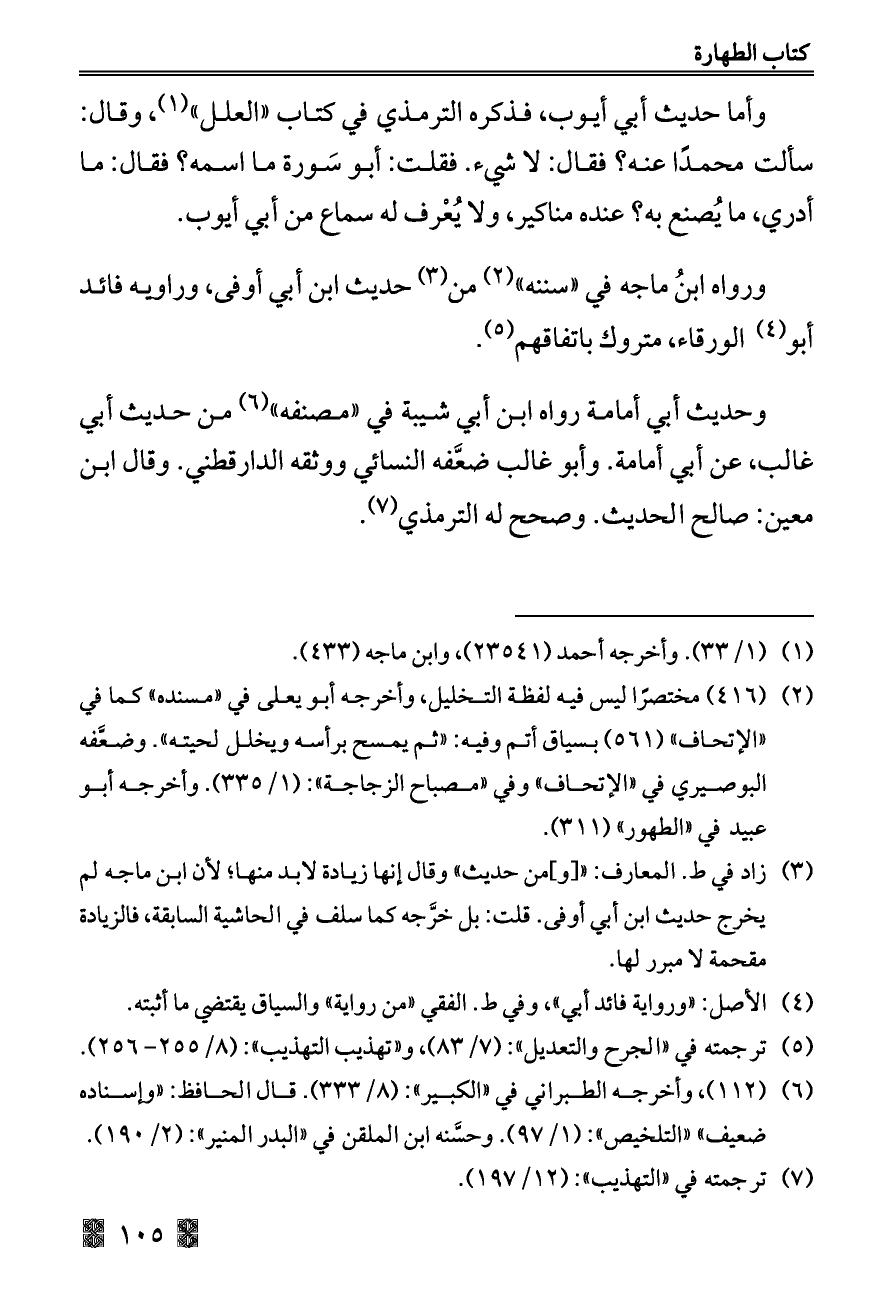 (¬٣) زاد في ط. المعارف: " [و] من حديث" وقال إنها زيادة لابد منها؛ لأن ابن ماجه لم يخرج حديث ابن أبي أوفى. قلت: بل خرَّجه كما سلف في الحاشية السابقة، فالزيادة مقحمة لا مبرر لها.