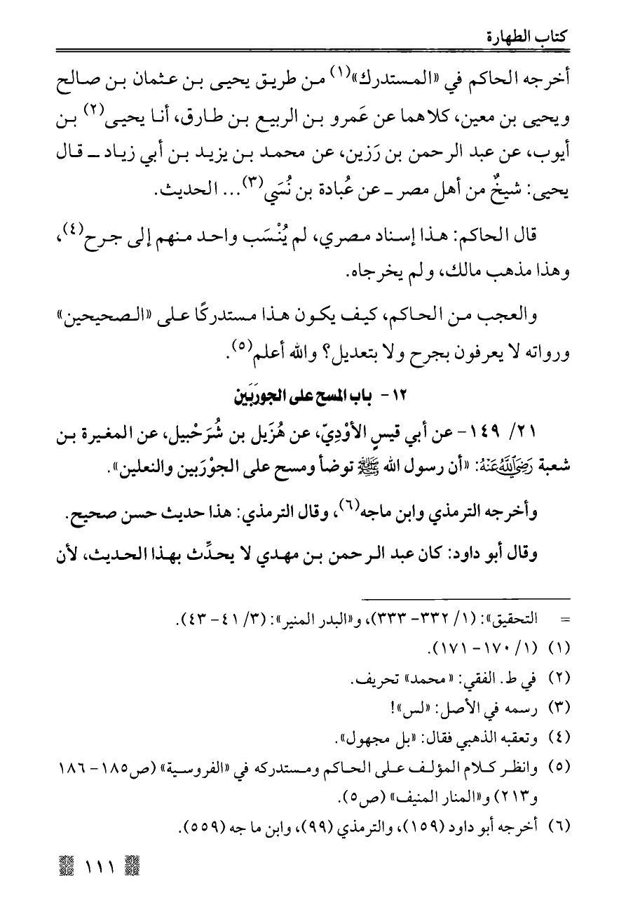 (¬٥) وانظر كلام المؤلف على الحاكم ومستدركه في "الفروسية" (ص ١٨٥ - ١٨٦ و ٢١٣) و"المنار المنيف" (ص ٥).