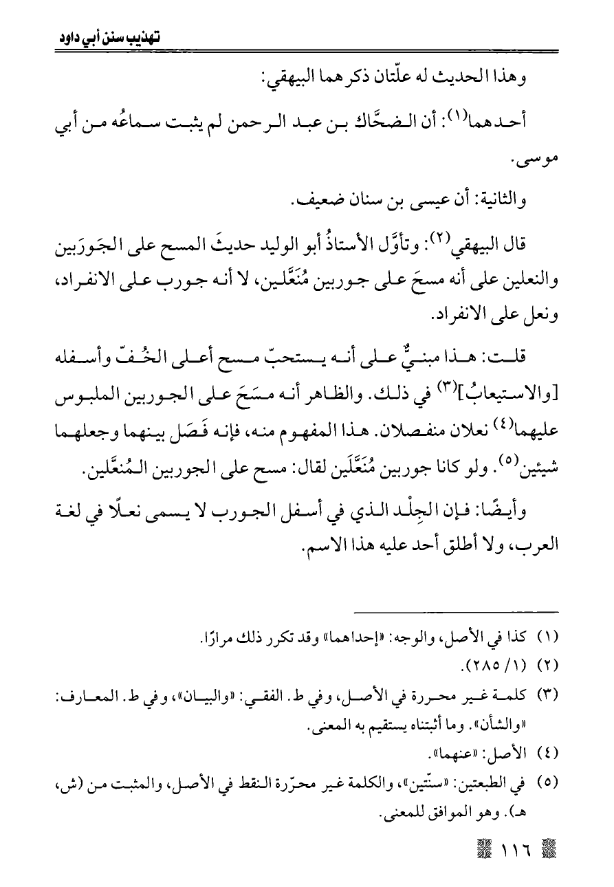 قال البيهقي (¬٢): وتأوَّل الأستاذُ أبو الوليد حديثَ المسح على الجَورَبين والنعلين على أنه مسحَ على جوربين مُنَعَّلين, لا أنه جورب على الانفراد, ونعل على الانفراد.
