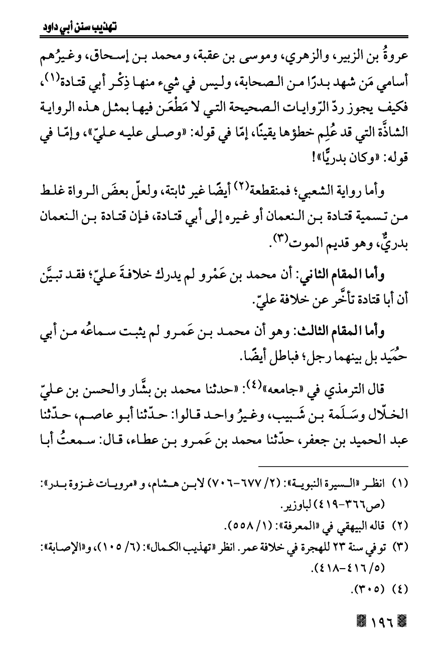 وأما المقام الثاني: أن محمد بن عَمْرو لم يدرك خلافةَ عليّ؛ فقد تبيَّن أن أبا قتادة تأخَّر عن خلافة عليّ.
