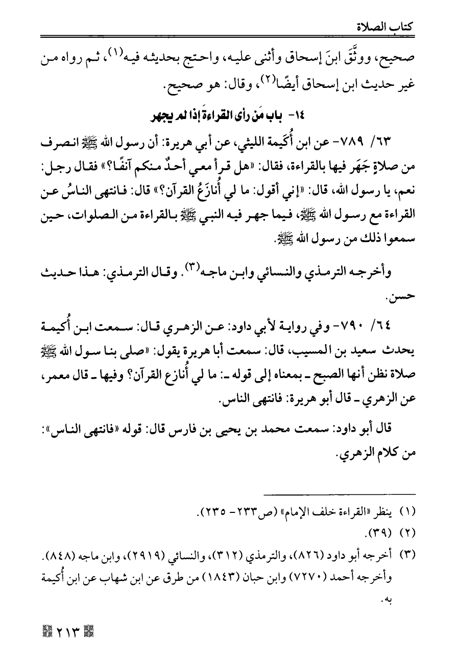 (¬١). ينظر «القراءة خلف الإمام» (ص ٢٣٣ - ٢٣٥).