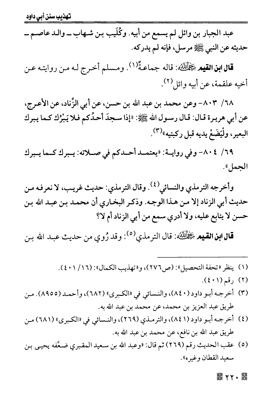 قال ابن القيم - رحمه الله -: قاله جماعةٌ (¬١). ومسلم أخرج له من روايته عن أخيه علقمة، عن أبيه وائل (¬٢).
