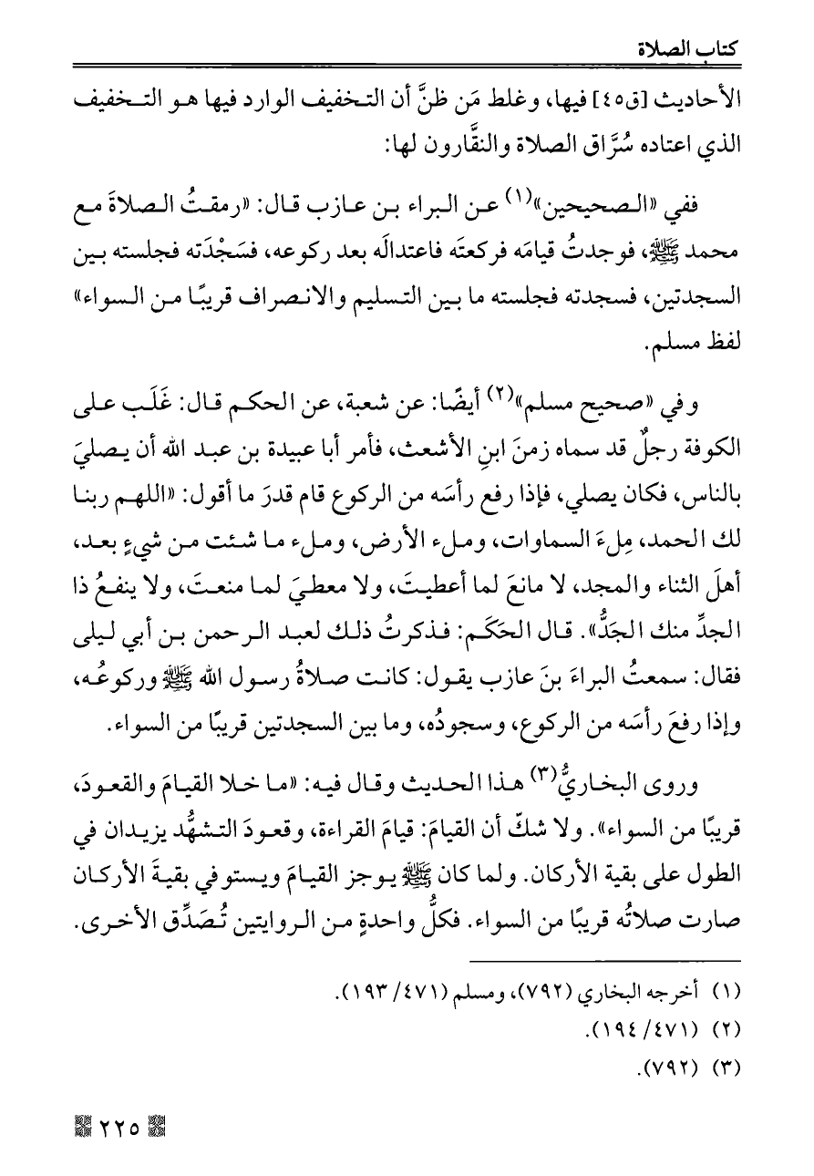 الأحاديث [ق ٤٥] فيها، وغلط مَن ظنَّ أن التخفيف الوارد فيها هو التخفيف الذي اعتاده سُرَّاق الصلاة والنقَّارون لها: