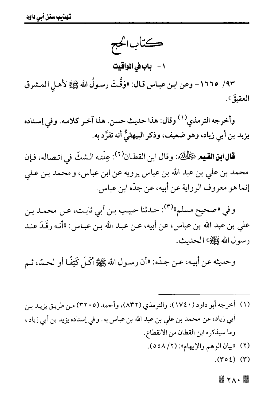 ٩٣/ ١٦٦٥ - وعن ابن عباس قال: «وَقَّتَ رسولُ الله - صلى الله عليه وسلم - لأهلِ المشرق العقيقَ».
