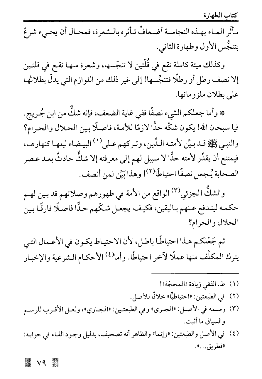 ثم جَعْلكم هذا احتياطًا باطل، لأن الاحتياط يكون في الأعمال التي يترك المكلَّف منها عملًا لآخر احتياطًا. وأما (¬٤) الأحكام الشرعية والإخبار