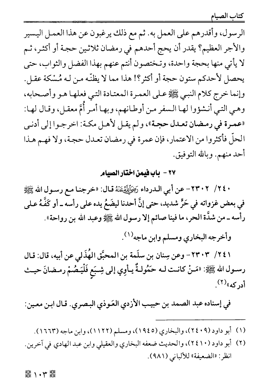 (¬١). أبو داود (٢٤٠٩)، والبخاري (١٩٤٥)، ومسلم (١١٢٢)، وابن ماجه (١٦٦٣).