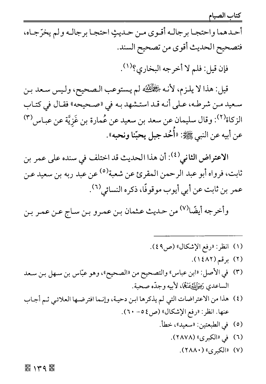 قيل: هذا لا يلزم، لأنه - رحمه الله - لم يستوعب الصحيح، وليس سعد بن سعيد من شرطه، على أنه قد استشهد به في «صحيحه» فقال في كتاب الزكاة (¬٢): وقال سليمان عن سعد بن سعيد عن عُمارة بن غَزِيَّة عن عباس (¬٣) عن أبيه عن النبي - صلى الله عليه وسلم -: «أُحُد جبل يحبّنا ونحبه».