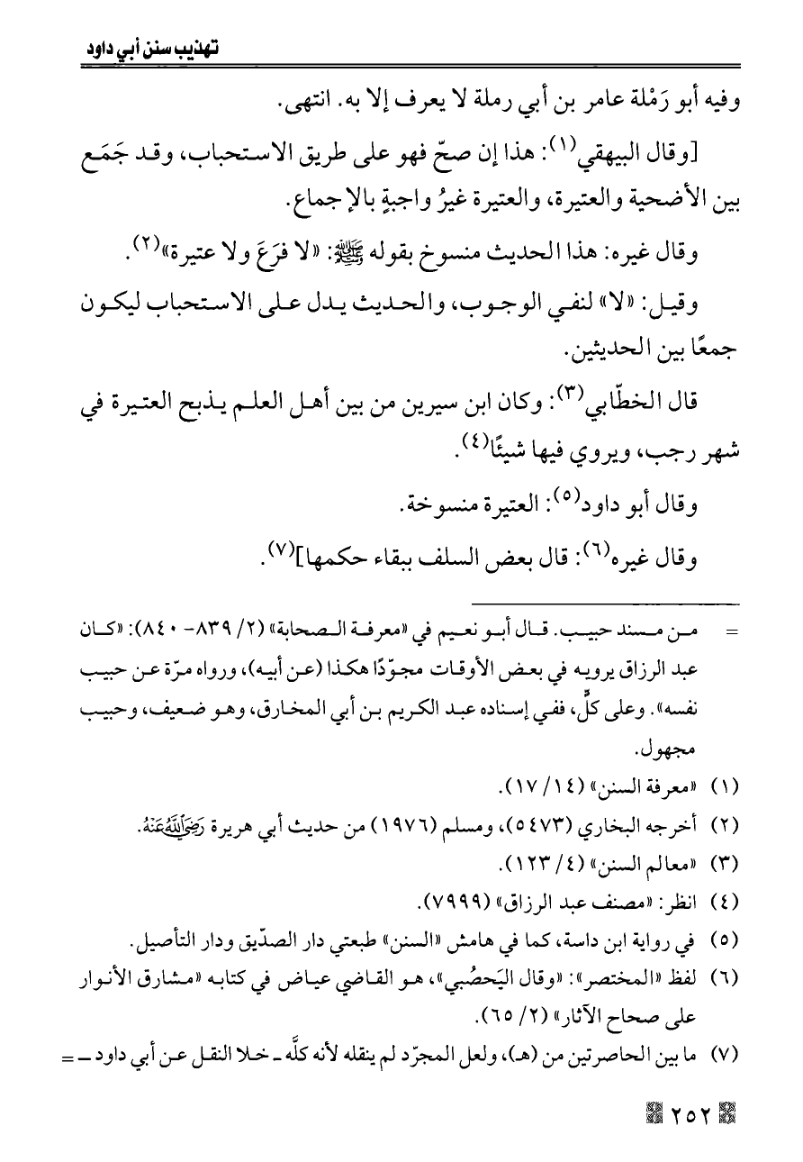 قال الخطّابي (¬٣): وكان ابن سيرين من بين أهل العلم يذبح العتيرة في شهر رجب، ويروي فيها شيئًا (¬٤).
