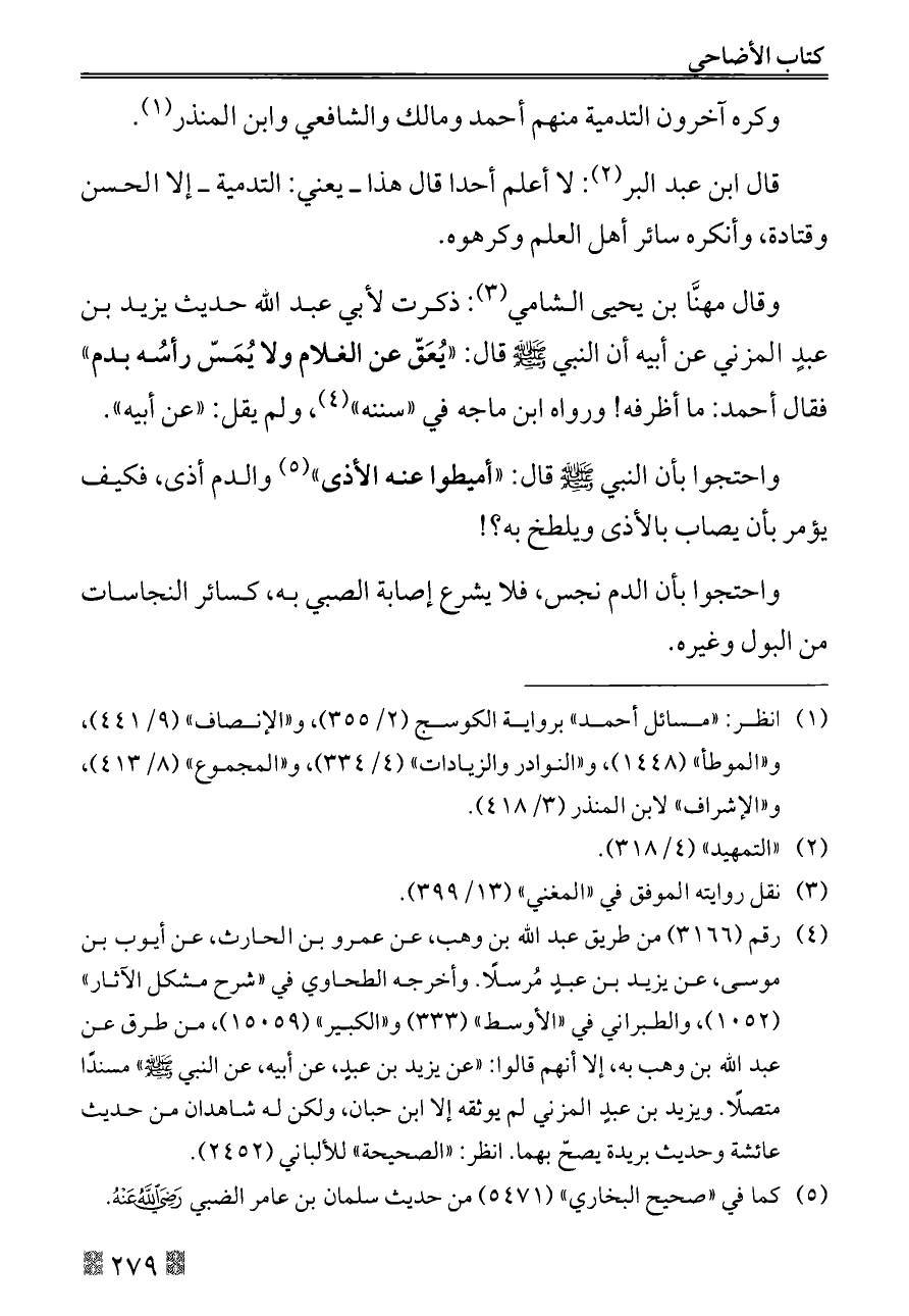 واحتجوا بأن الدم نجس، فلا يشرع إصابة الصبي به، كسائر النجاسات من البول