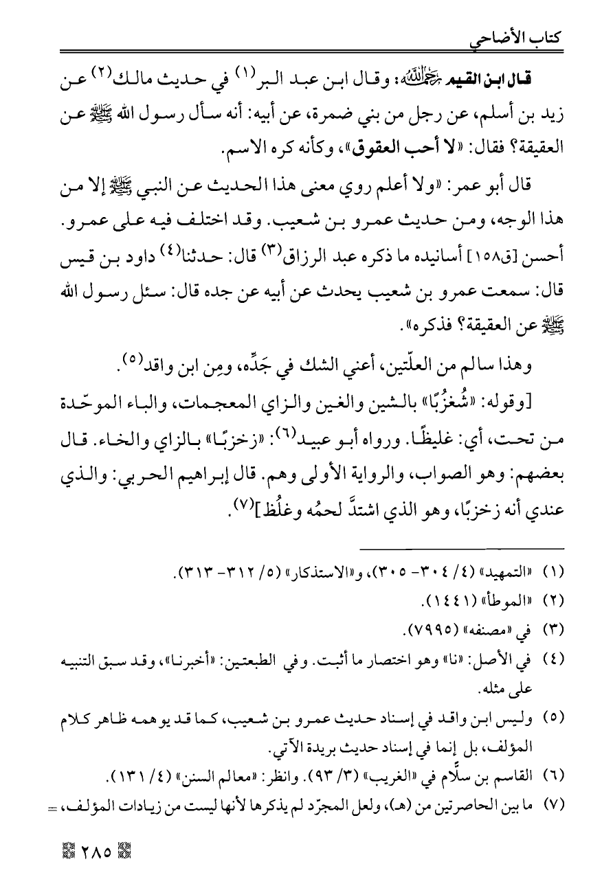 (¬١) «التمهيد» (٤/ ٣٠٤ - ٣٠٥)، و «الاستذكار» (٥/ ٣١٢ - ٣١٣).