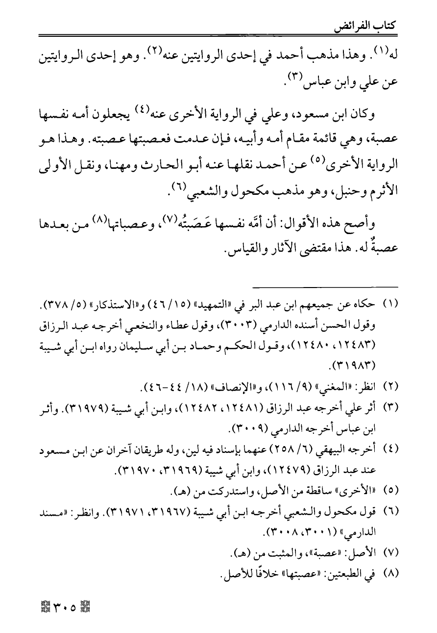 (¬٨) في الطبعتين: «عصبتها» خلافًا للأصل.