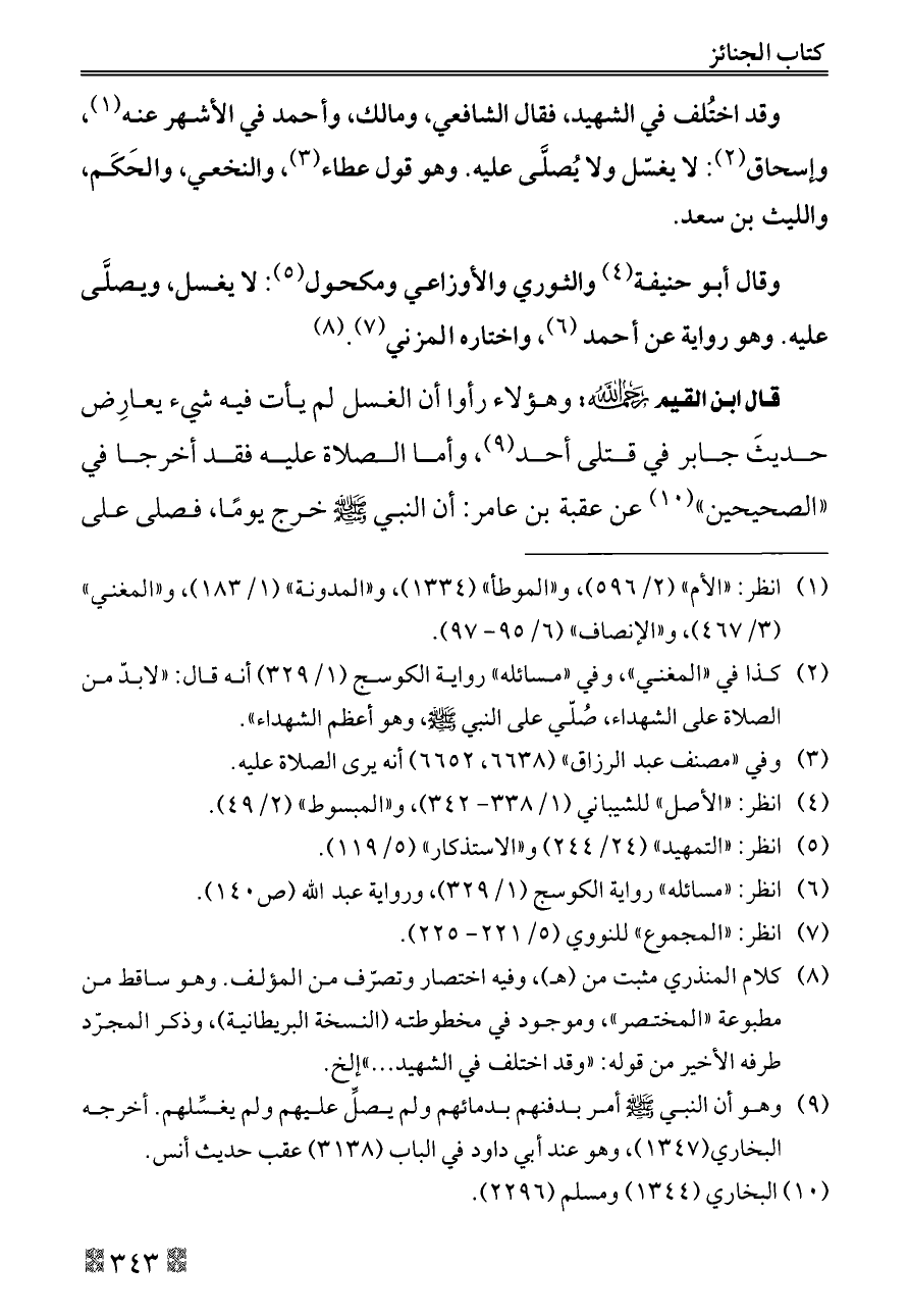 (¬٩) وهو أن النبي - صلى الله عليه وسلم - أمر بدفنهم بدمائهم ولم يصلِّ عليهم ولم يغسِّلهم. أخرجه البخاري (١٣٤٧)، وهو عند أبي داود في الباب (٣١٣٨) عقب حديث أنس.