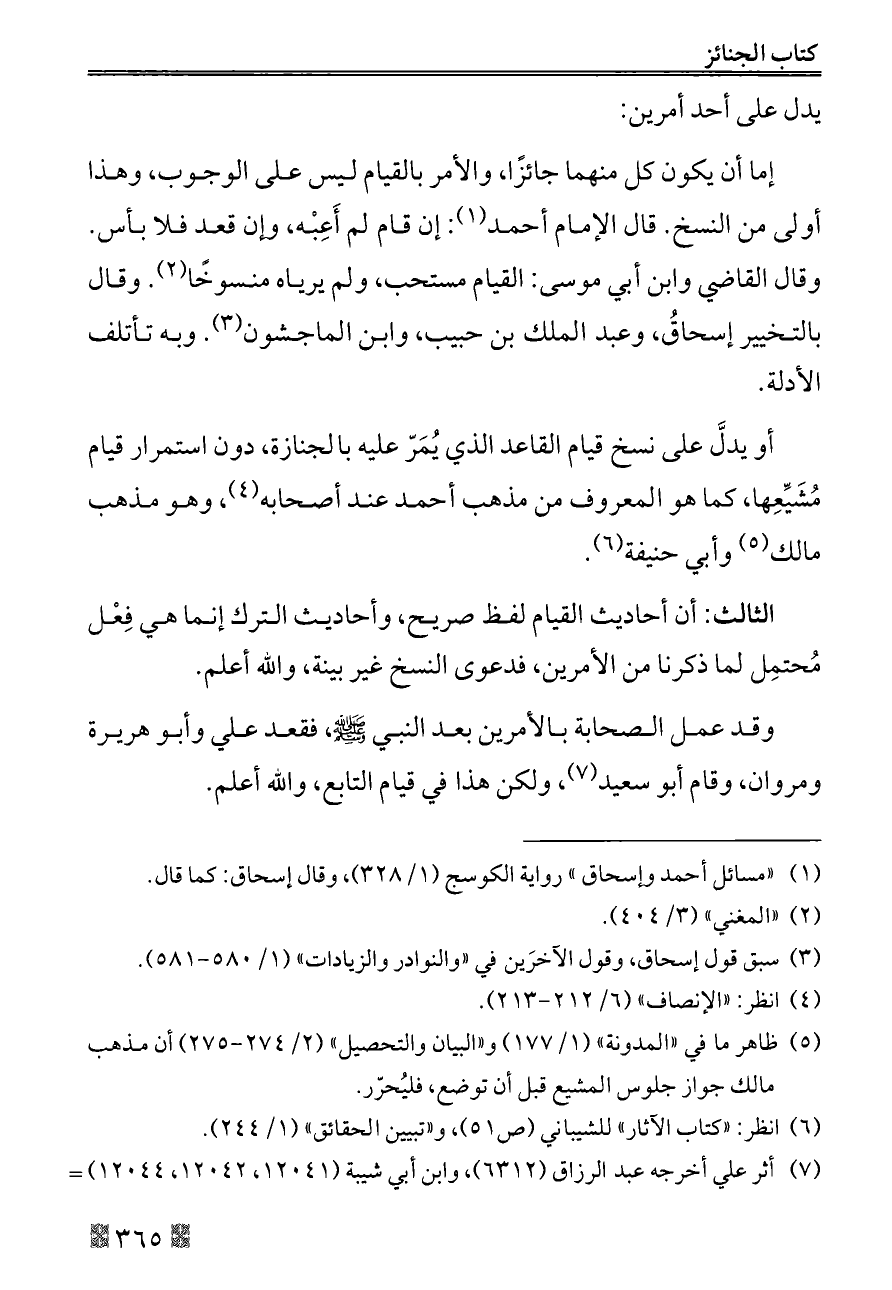 أو يدلَّ على نسخ قيام القاعد الذي يُمَرّ عليه بالجنازة، دون استمرار قيام مُشَيِّعِها، كما هو المعروف من مذهب أحمد عند أصحابه (¬٤)، وهو مذهب مالك (¬٥) وأبي حنيفة (¬٦).